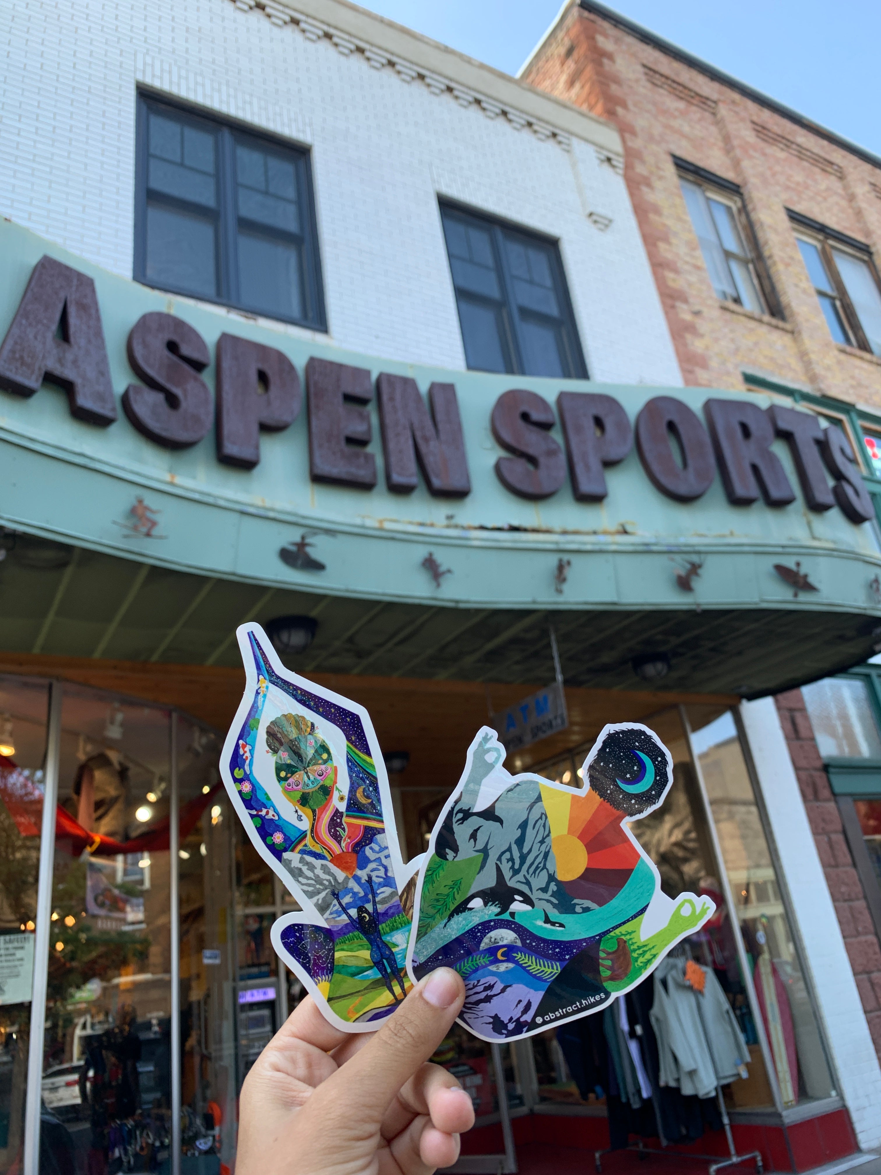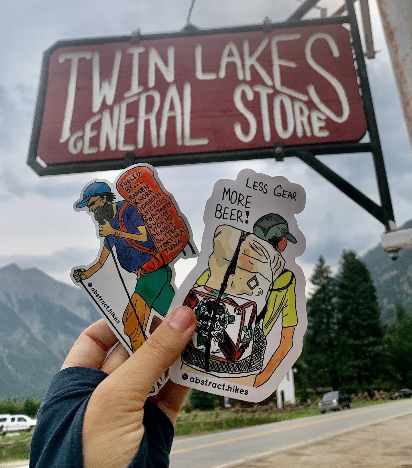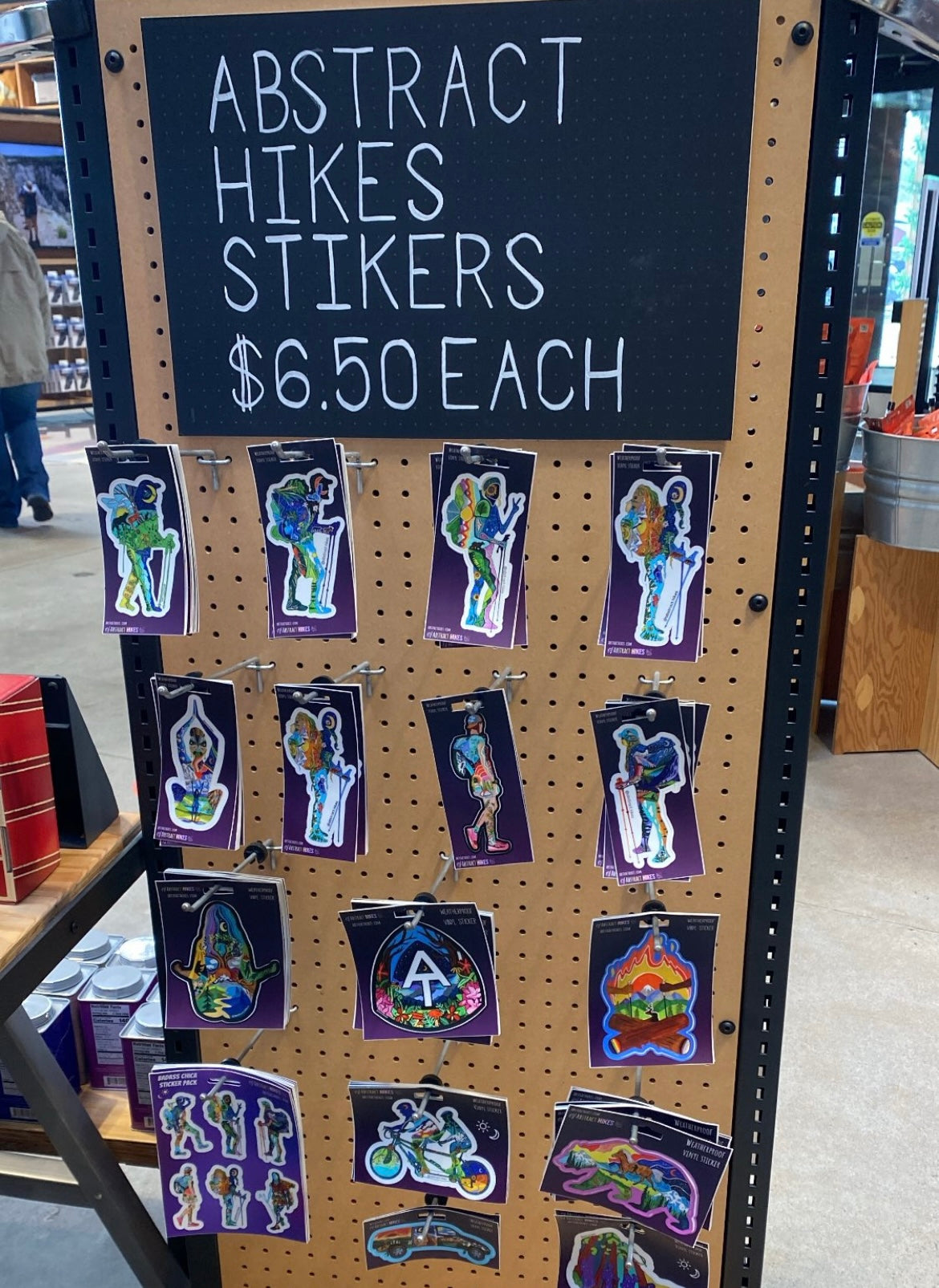 1. Abstract Hikes stickers stand out because they are hand painted, opposed to graphically designed like conventional outdoor themed stickers. They also are more intricate.