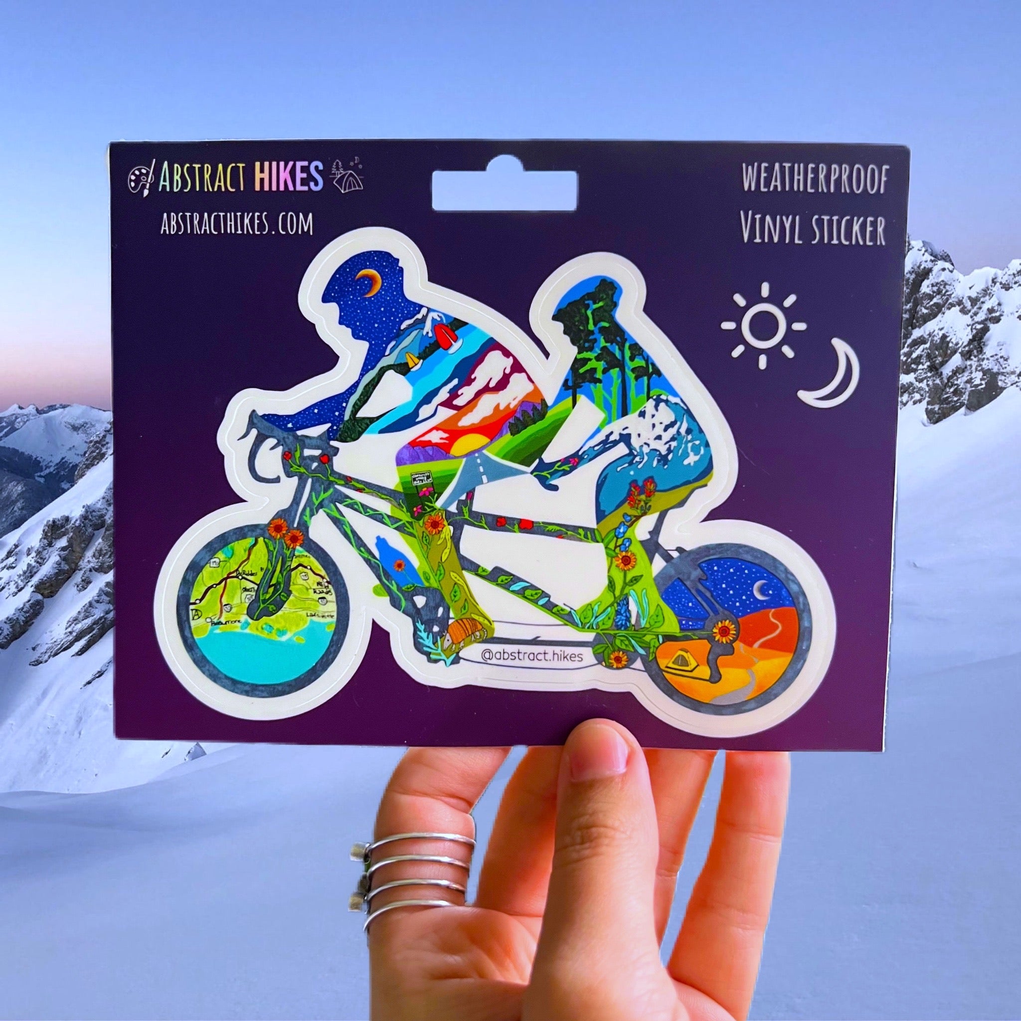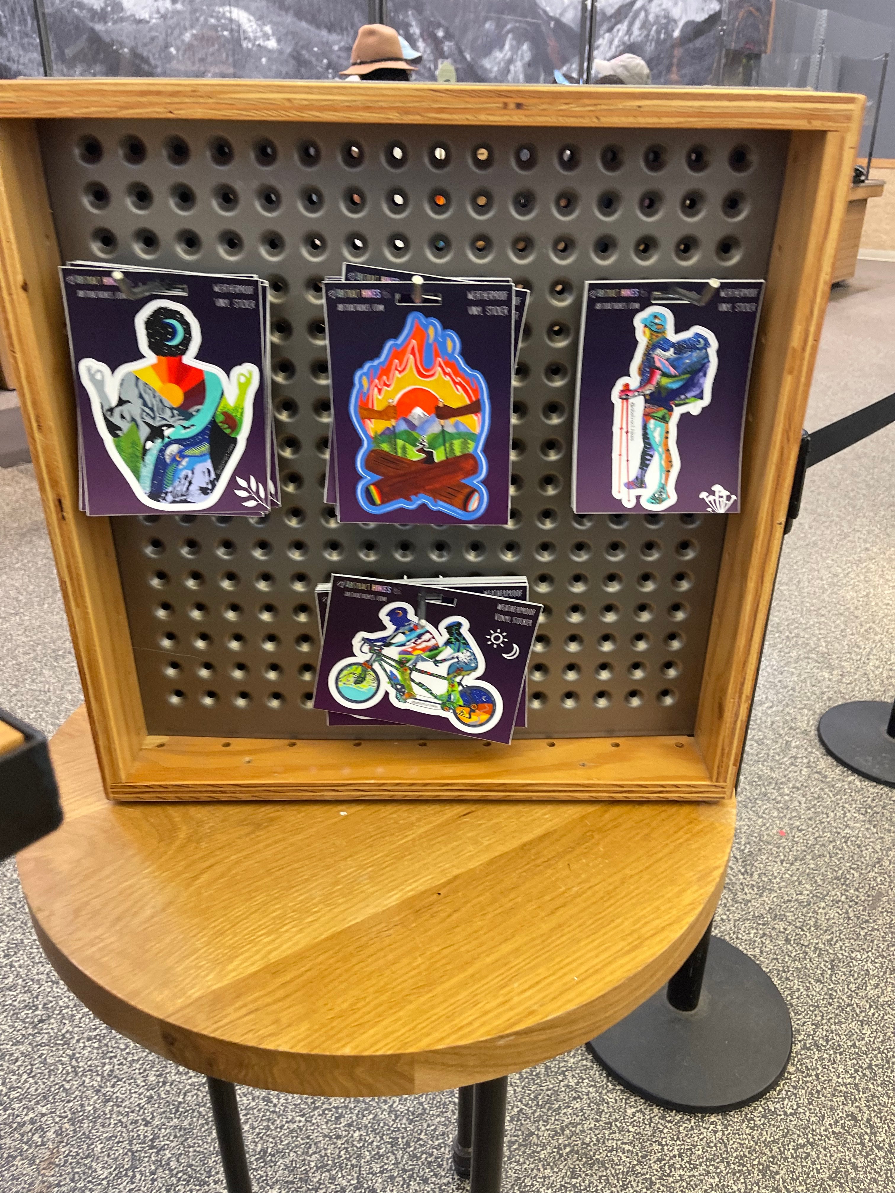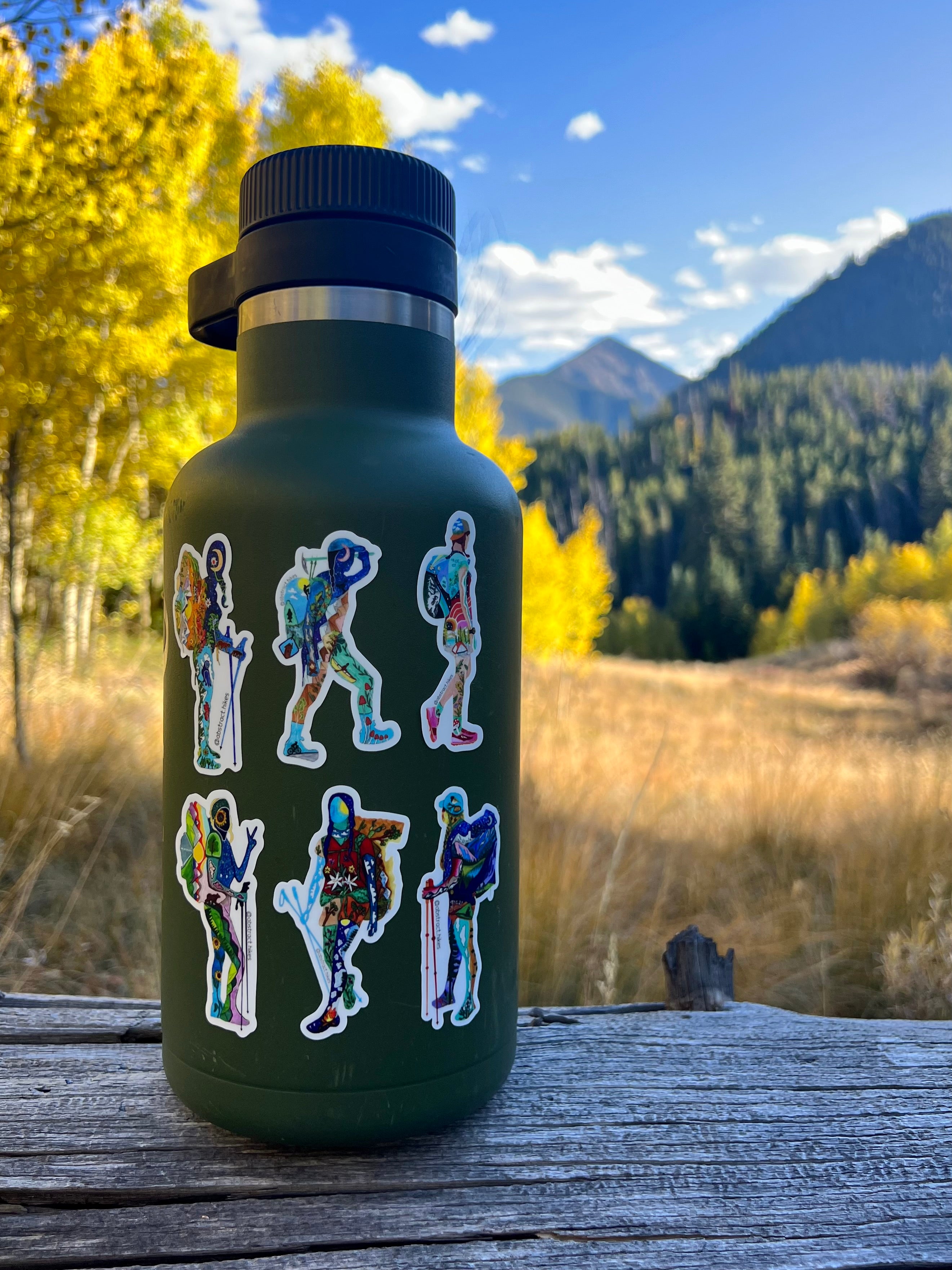 1. Abstract Hikes stickers stand out because they are hand painted, opposed to graphically designed like conventional outdoor themed stickers. They also are more intricate.