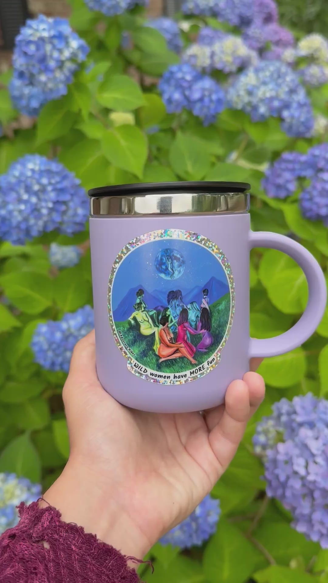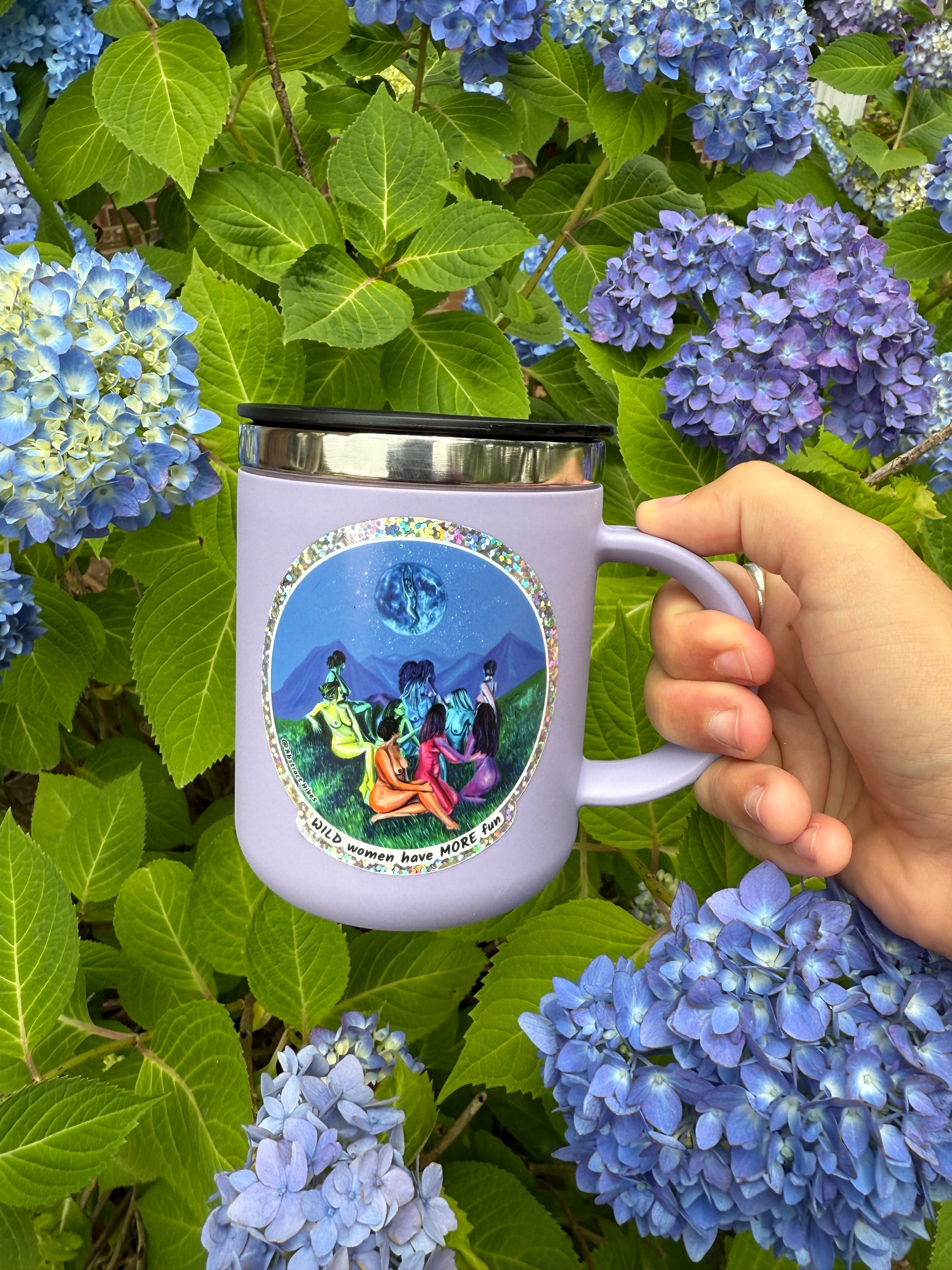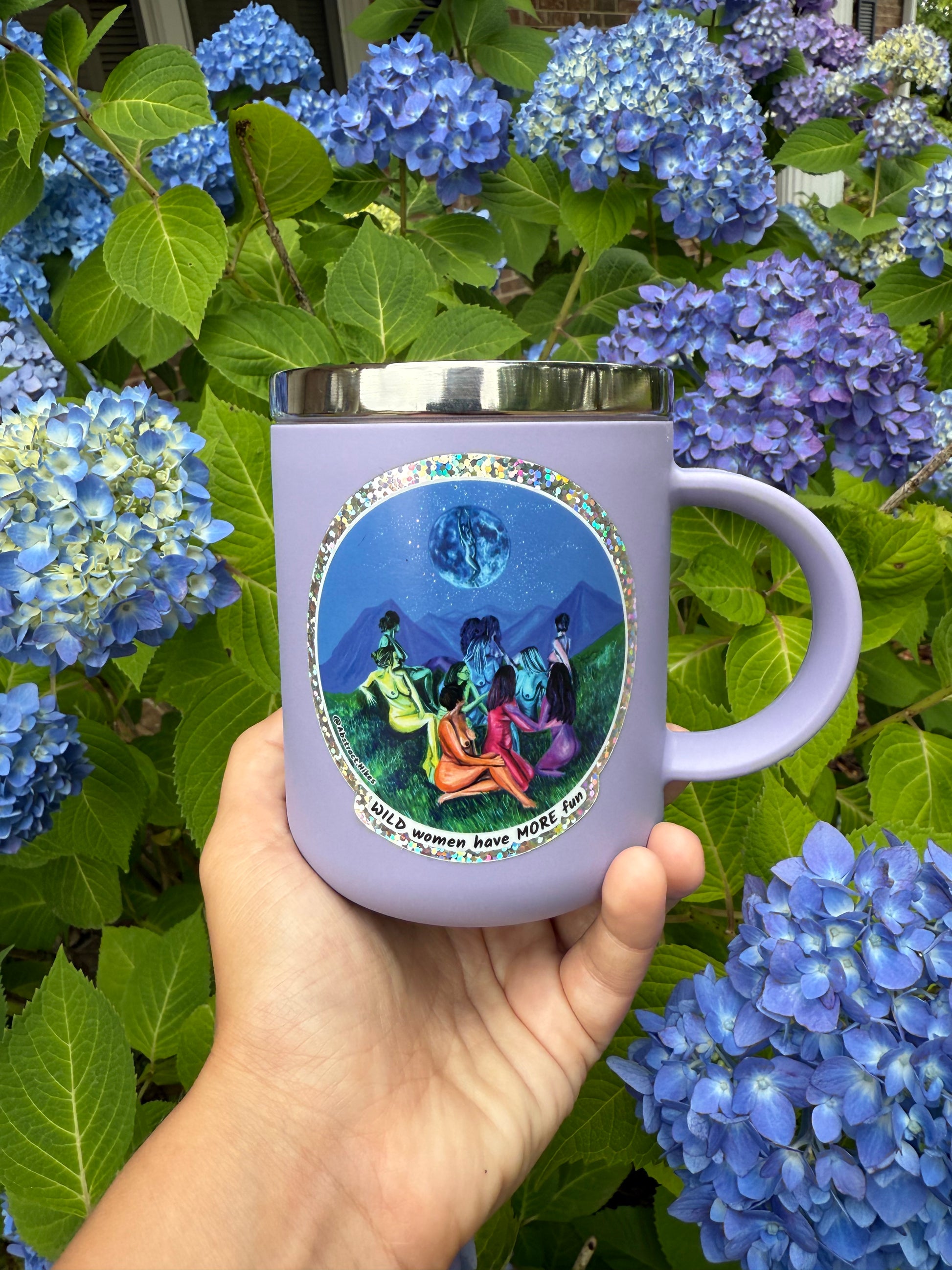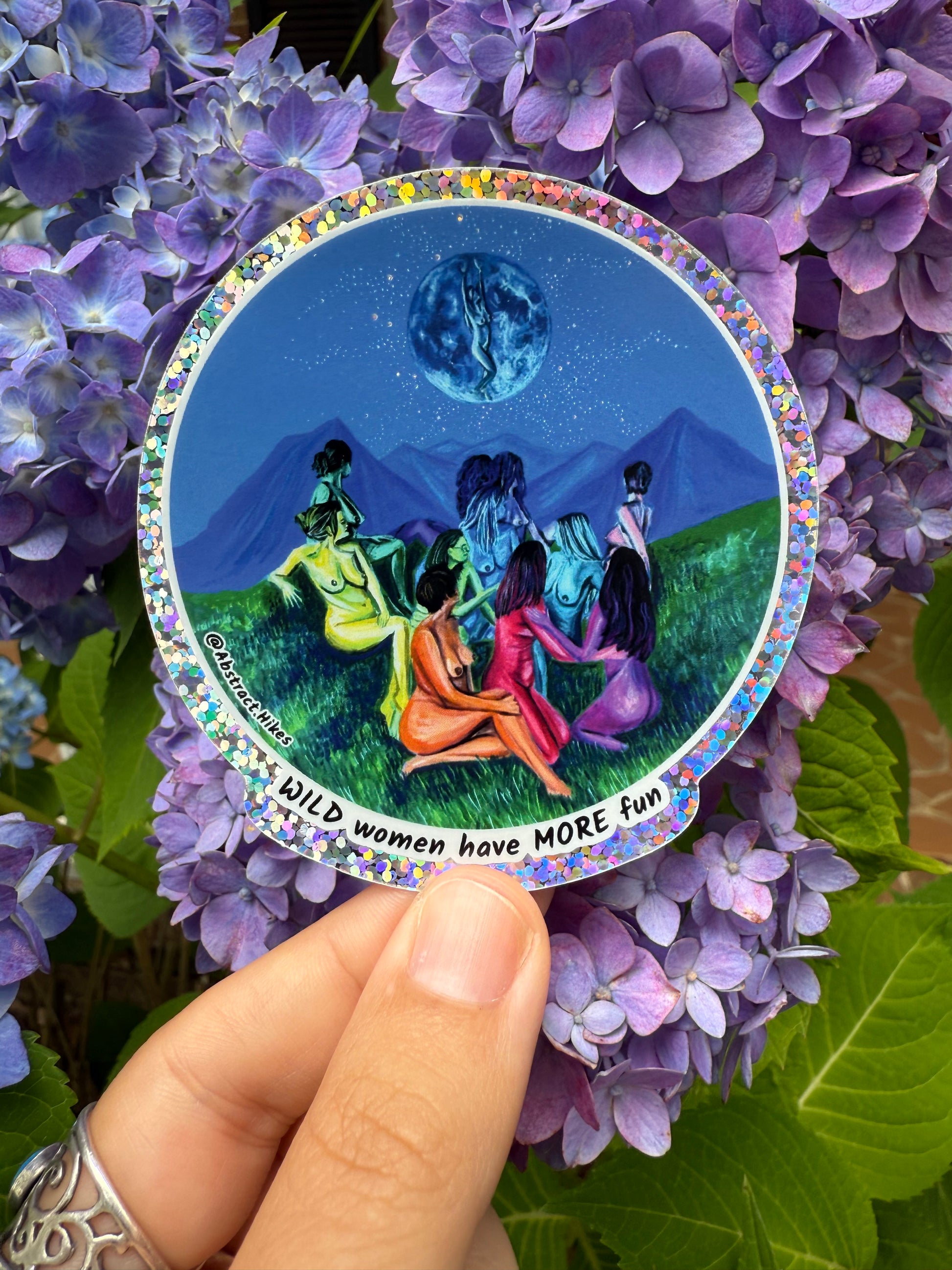 All my designs start as paintings that tell the stories of real people's adventures in nature. Look close to see a goddess in the moon, sparkling stars, and the essence of women in the wild!
