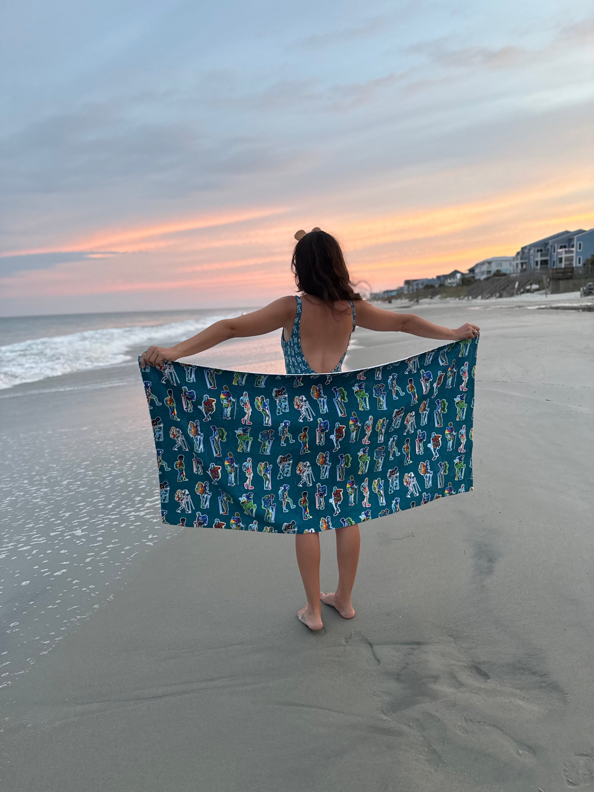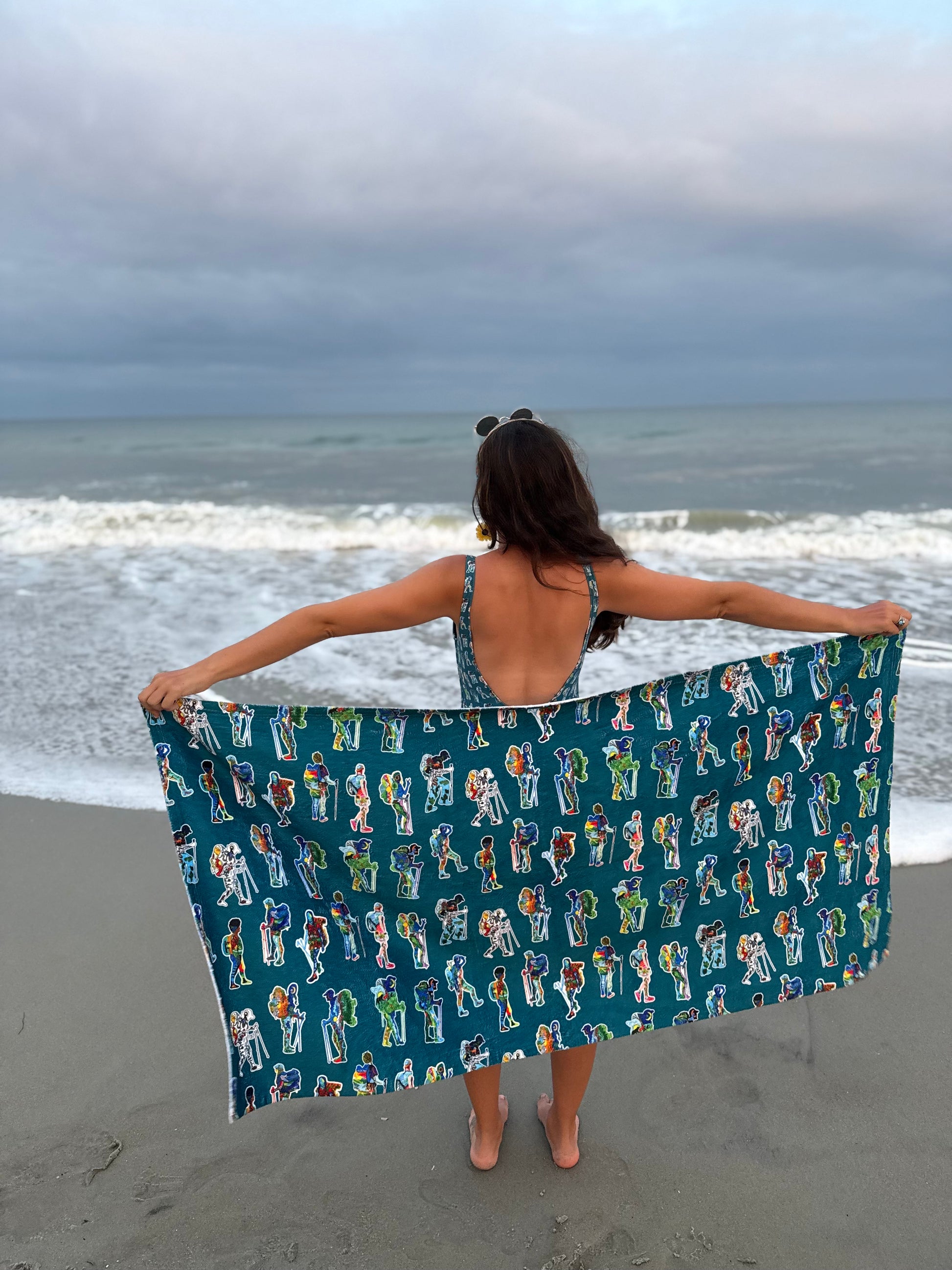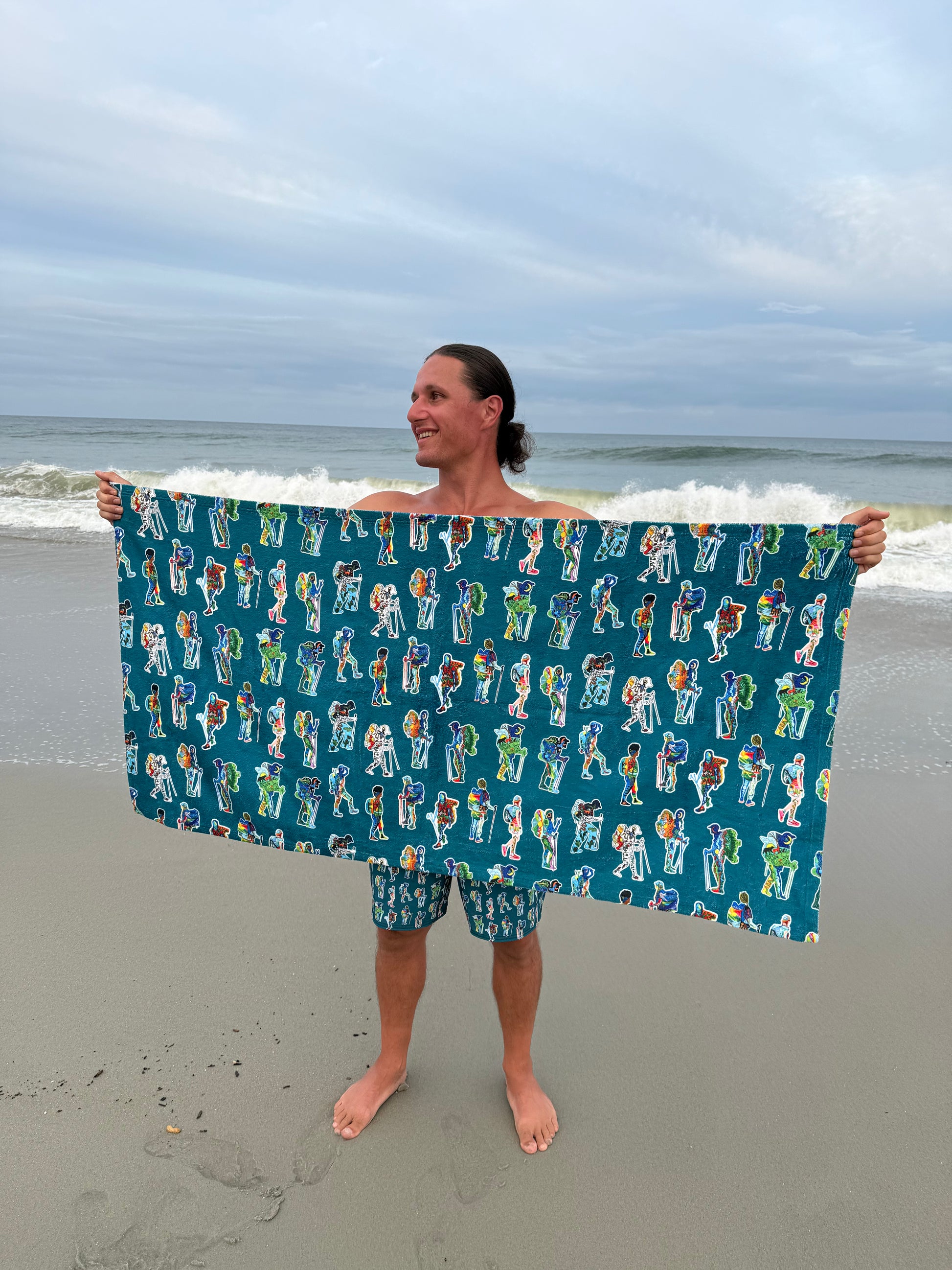 Towel designs features 13 of my hand-painted backpacker designs!