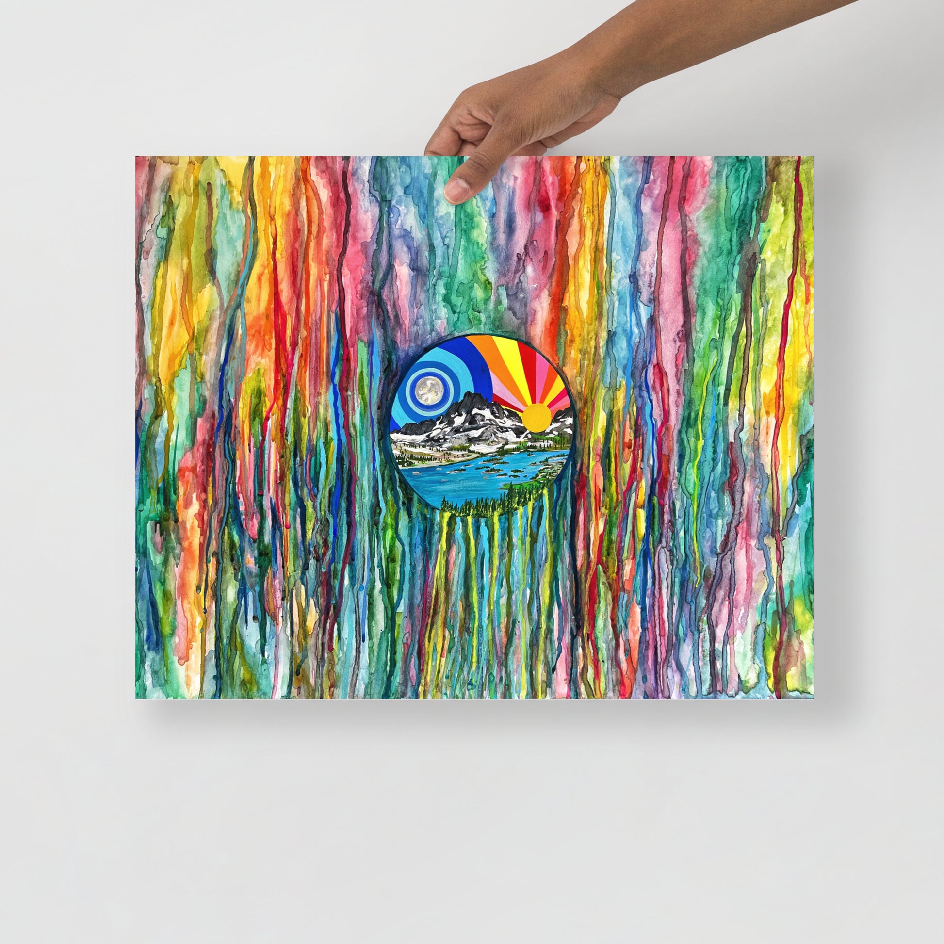 This painting is inspired by hiking through the High Sierras during my thru hike attempt of the Pacific Crest Trail in 2019. Thousand Island Lake and Banner Peak were some of my favorite views on trail!
