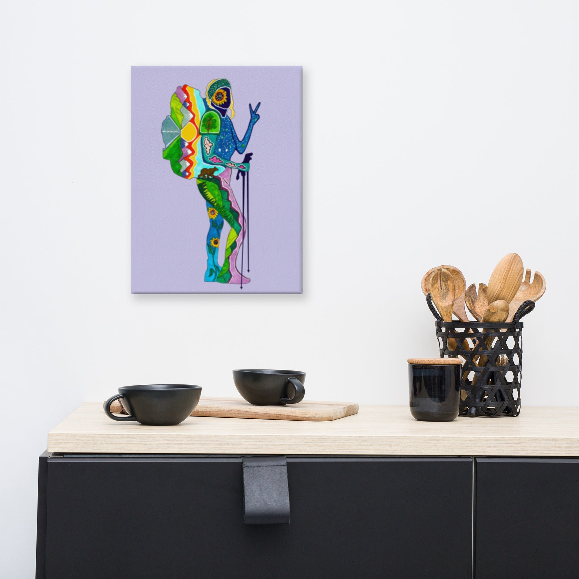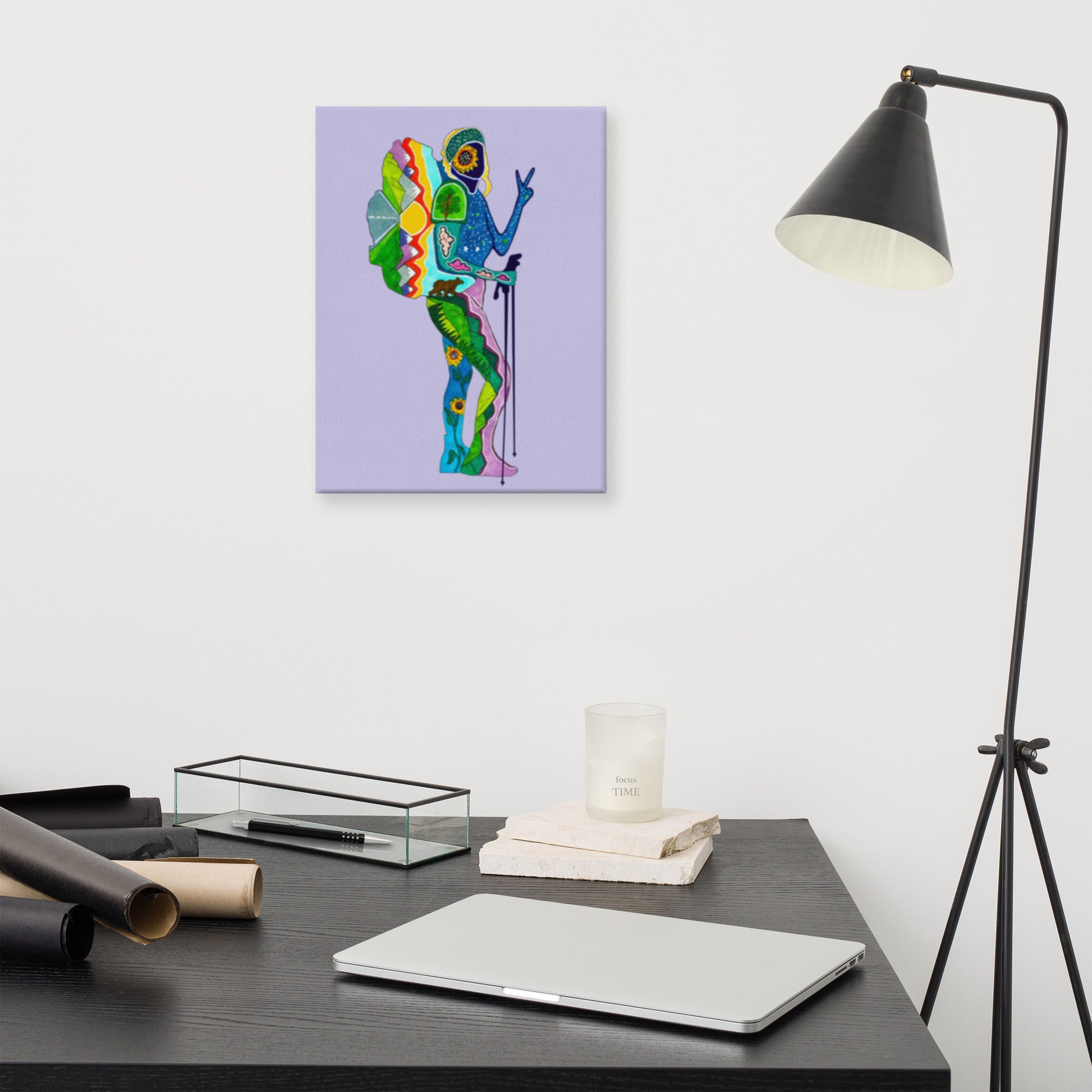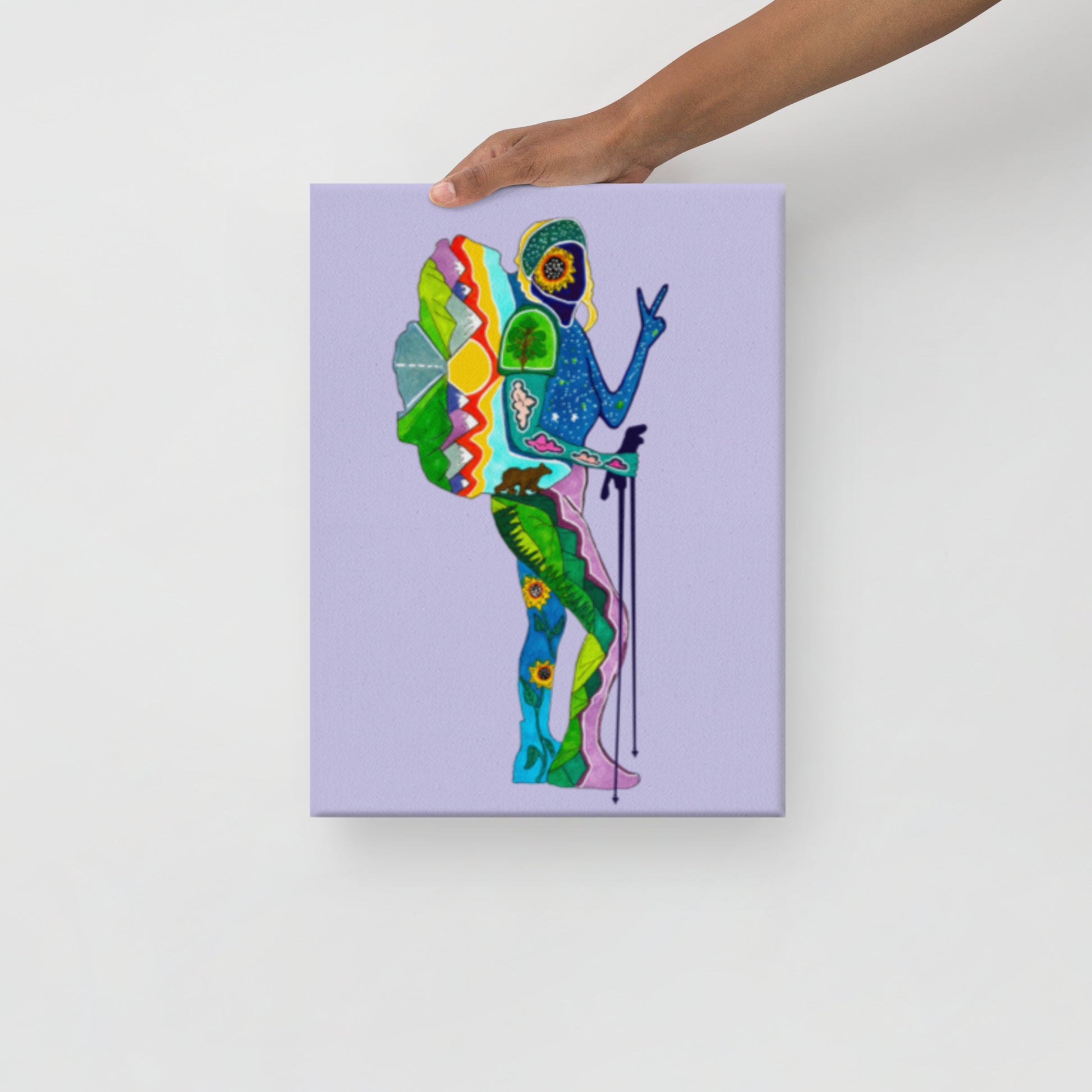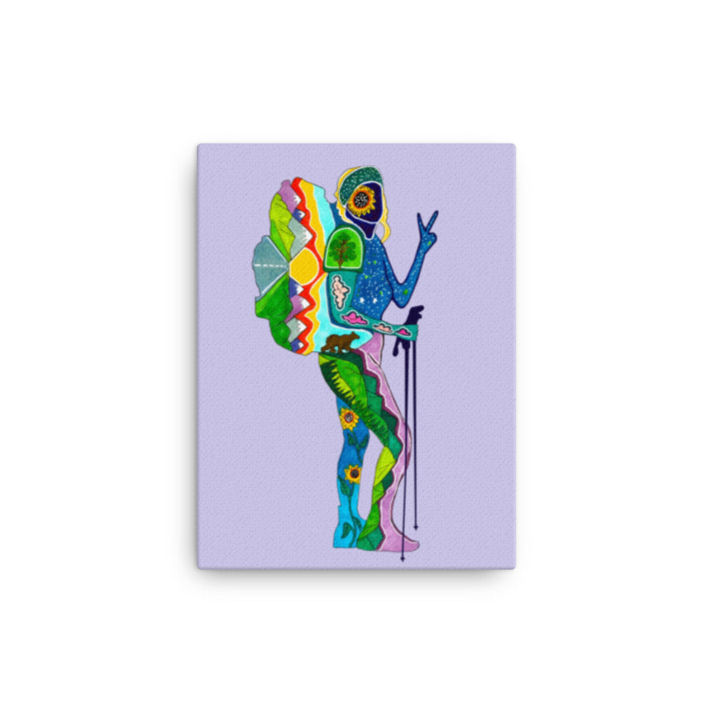 "Chica (Jen) thru-hiked the AT nobo in 2017 and this art was created from a photo of her on the trail shortly after entering the 100 Mile Wilderness in Monson, ME – so close to the end! Since the AT, Chica and her husband Sunsets have gone on to hike the Camino (Spain), Colorado Trail, Ice Age Trail, Bartram Trail and Foothills Trail. They now own and operate a hiker hostel along the AT in Franklin, NC (Chica & Sunsets Hostel) and Chica makes hiker-inspired arm candy jewelry."