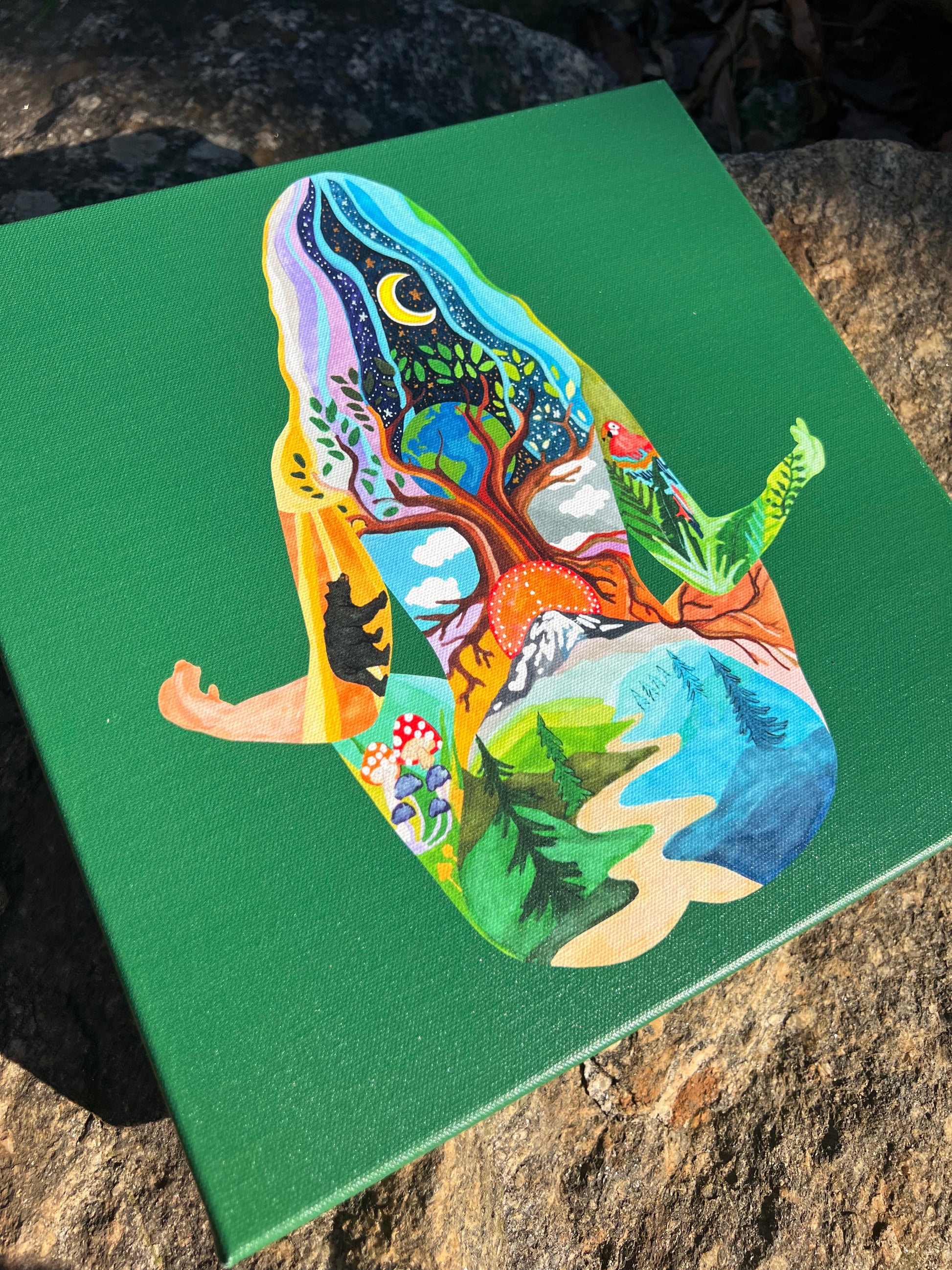 This particular print is a self-portrait that encapsulates the beautiful internal world that one can tap into through meditation and yoga. This piece is sure to bring peace and tranquilly into your space, not to mention the vivid colors are as good as the original painting!