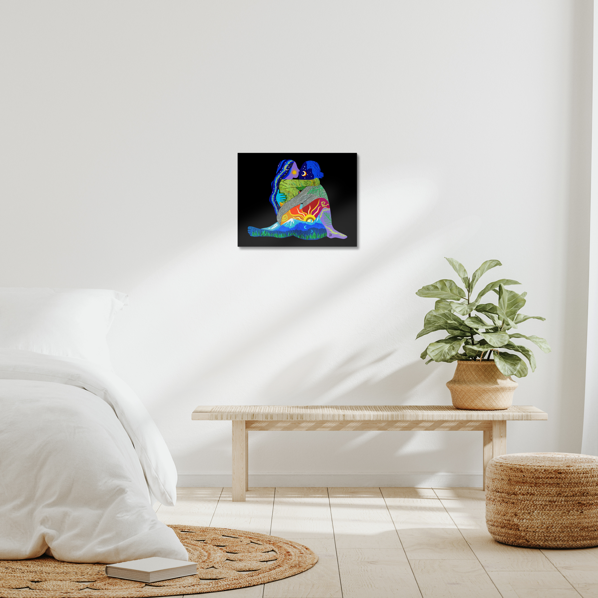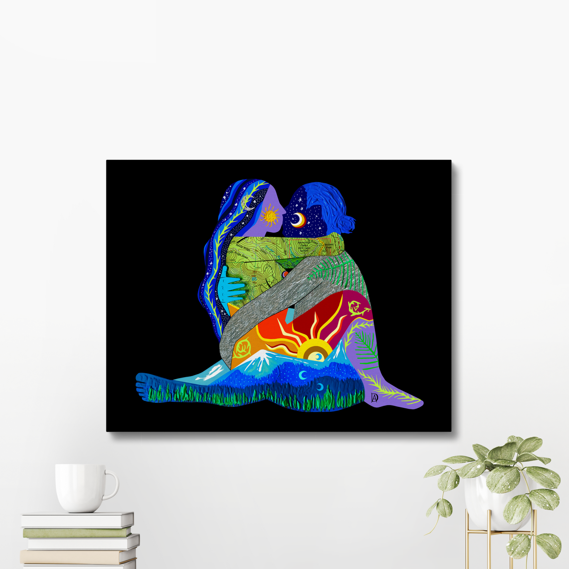 This print is based on a self-portrait painting of my partner and I embracing. This piece is sure to inspire love and connection, not to mention the vivid colors are as good as the original painting!