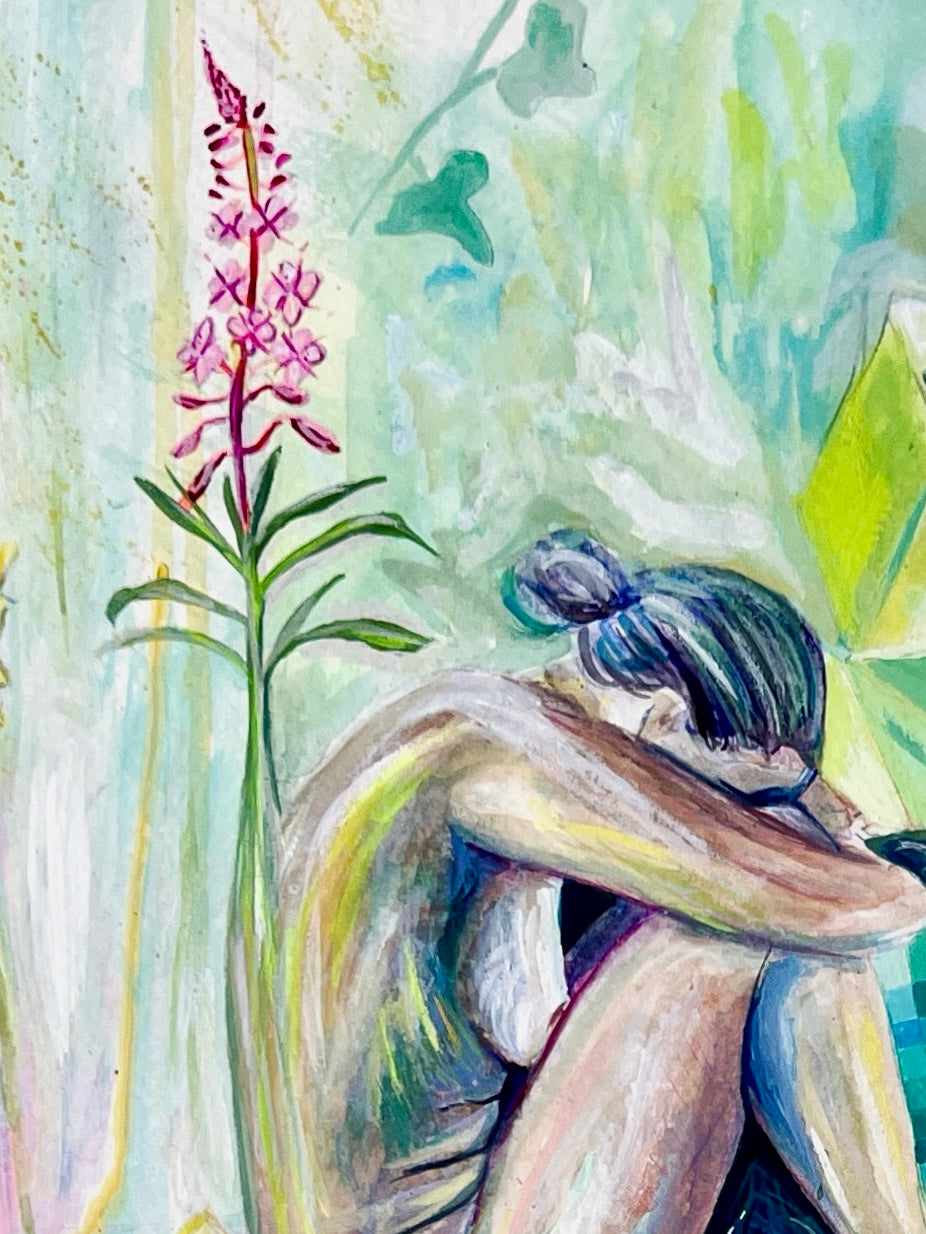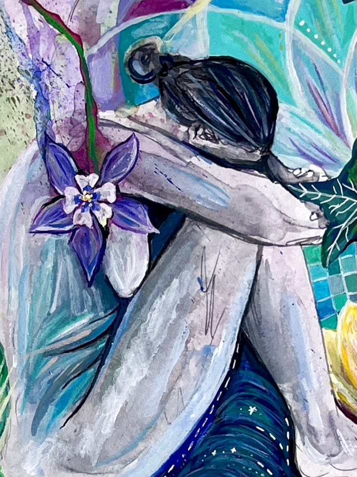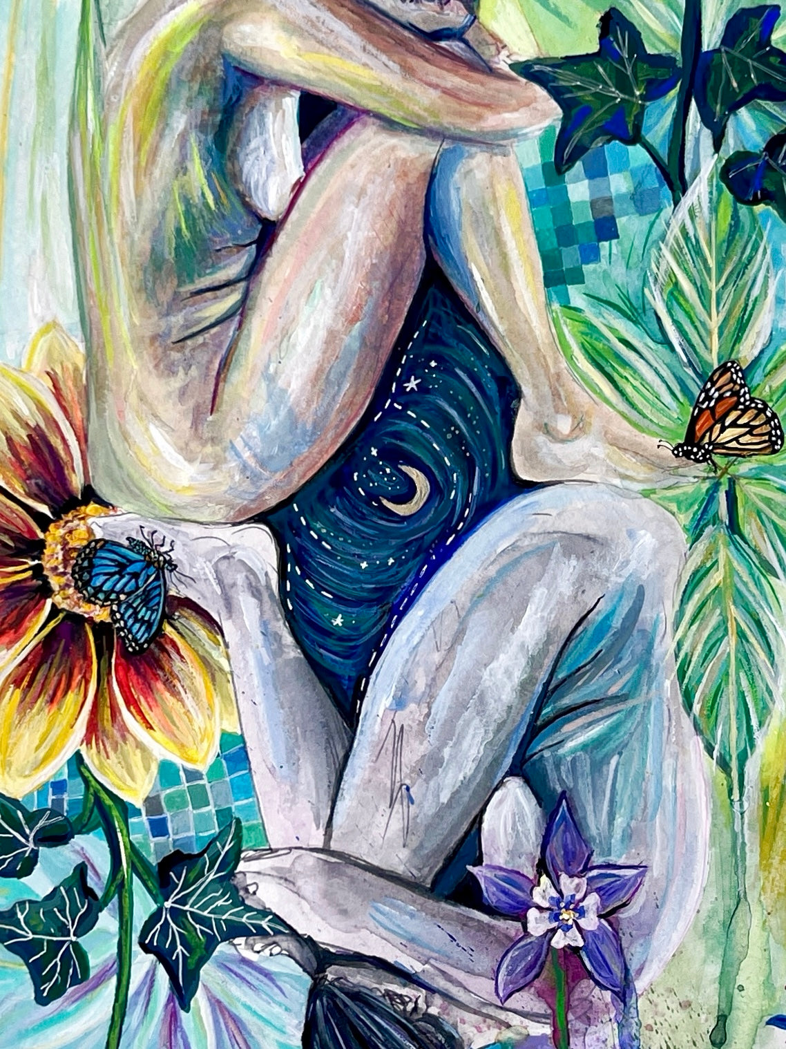 This is the first painting in my new series of abstract female forms, sacred geometry, and nature scenes that I will be releasing over the next year!