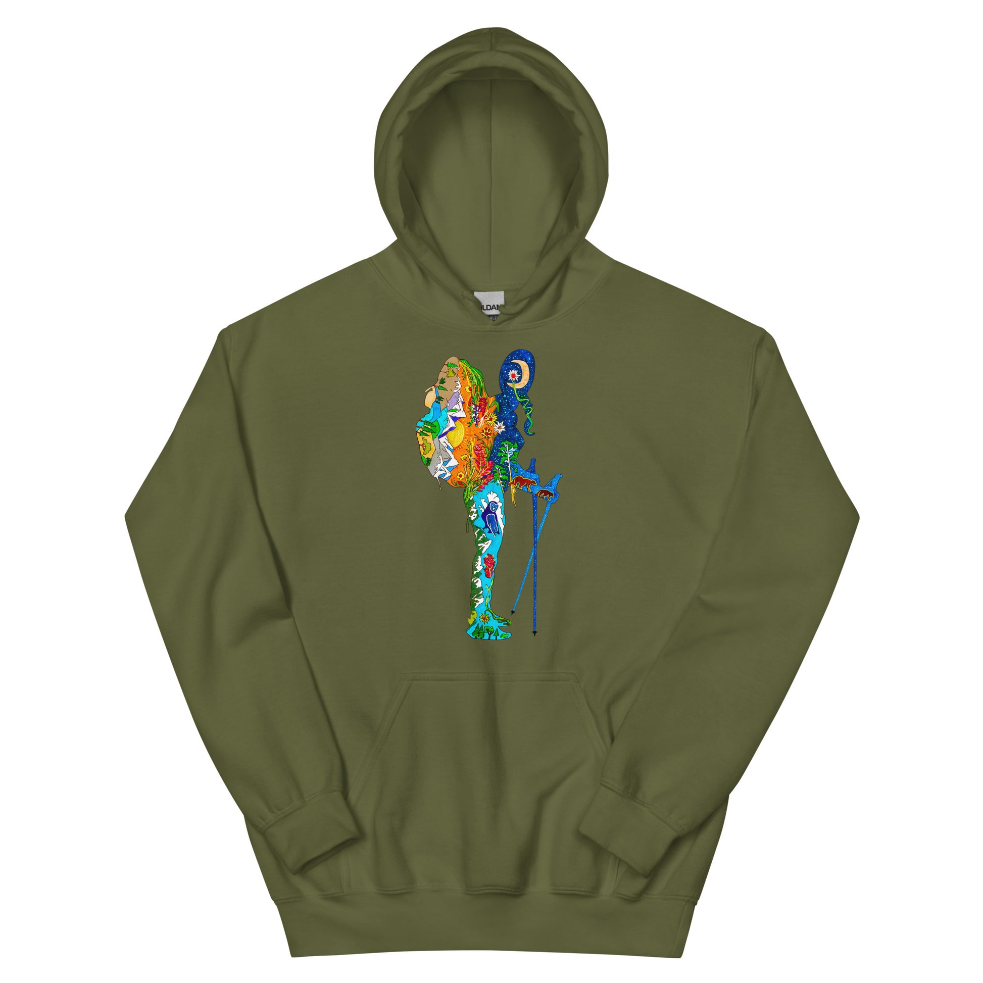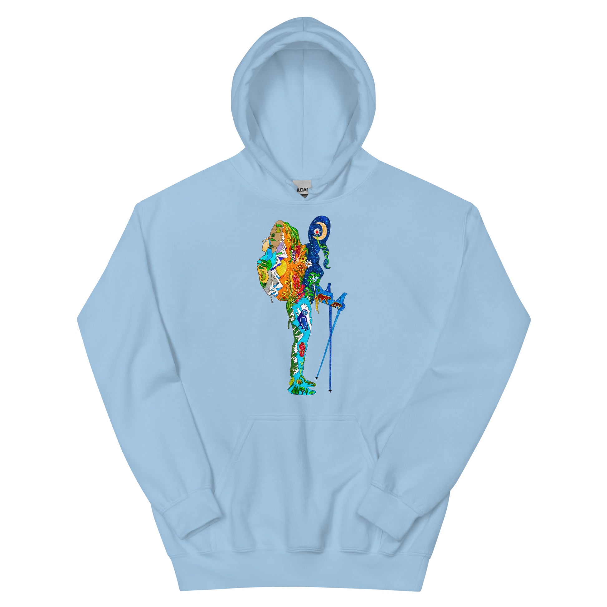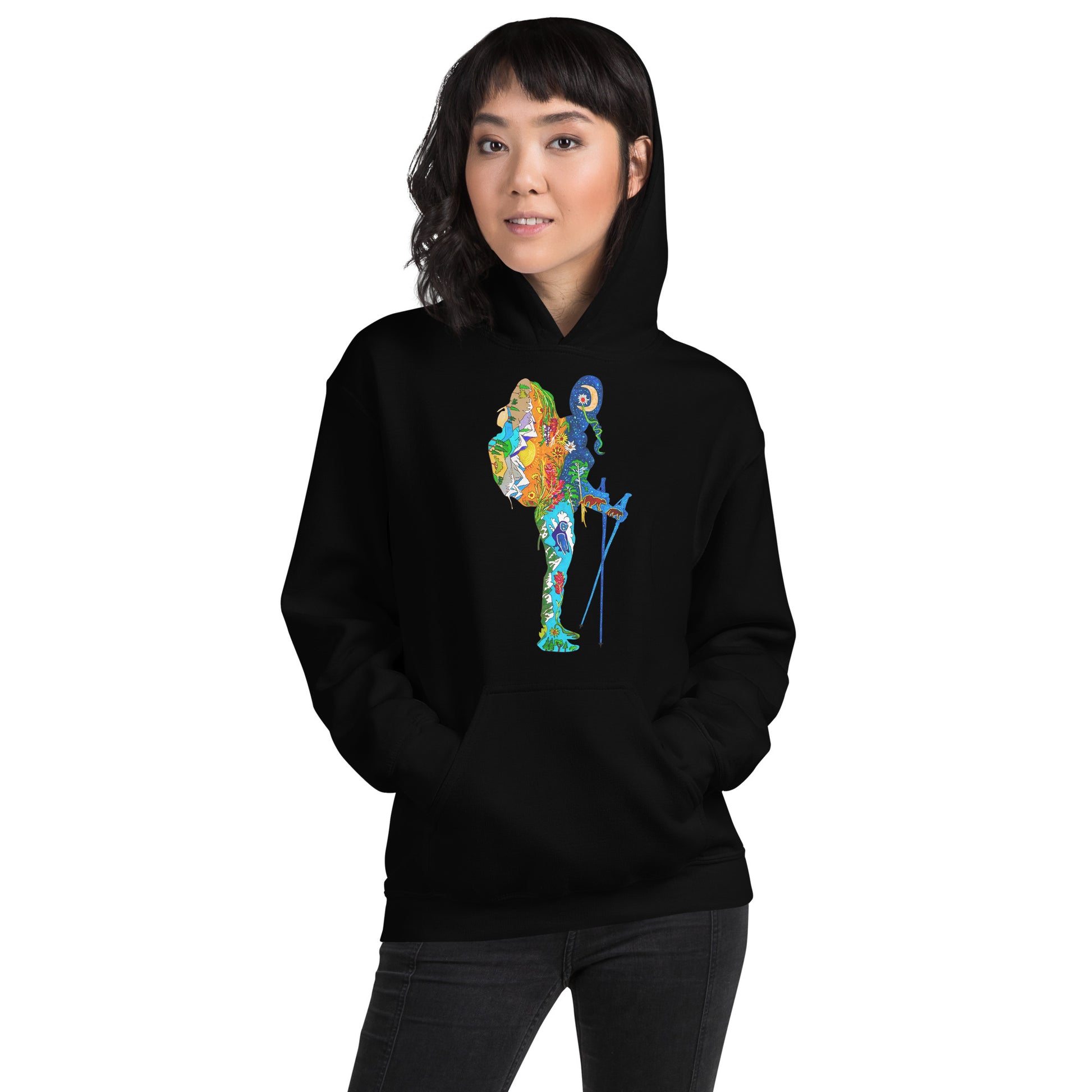 This particular design “Hiker Gal” is a self-portrait from my 1,800 mile hike on the Pacific Crest Trail. The photo inspiration is from the top of Bishop Pass in the Sierra Mountains.
