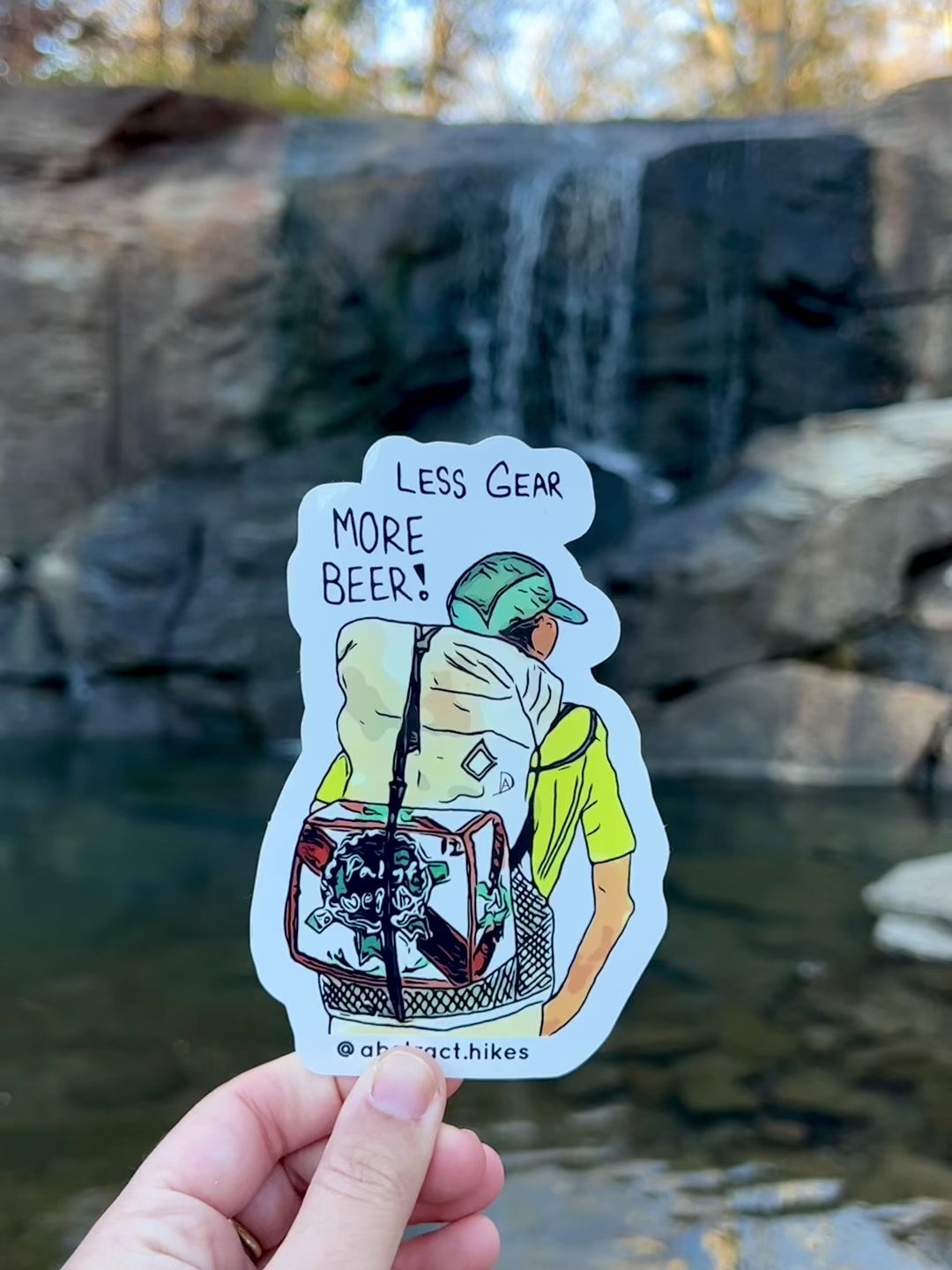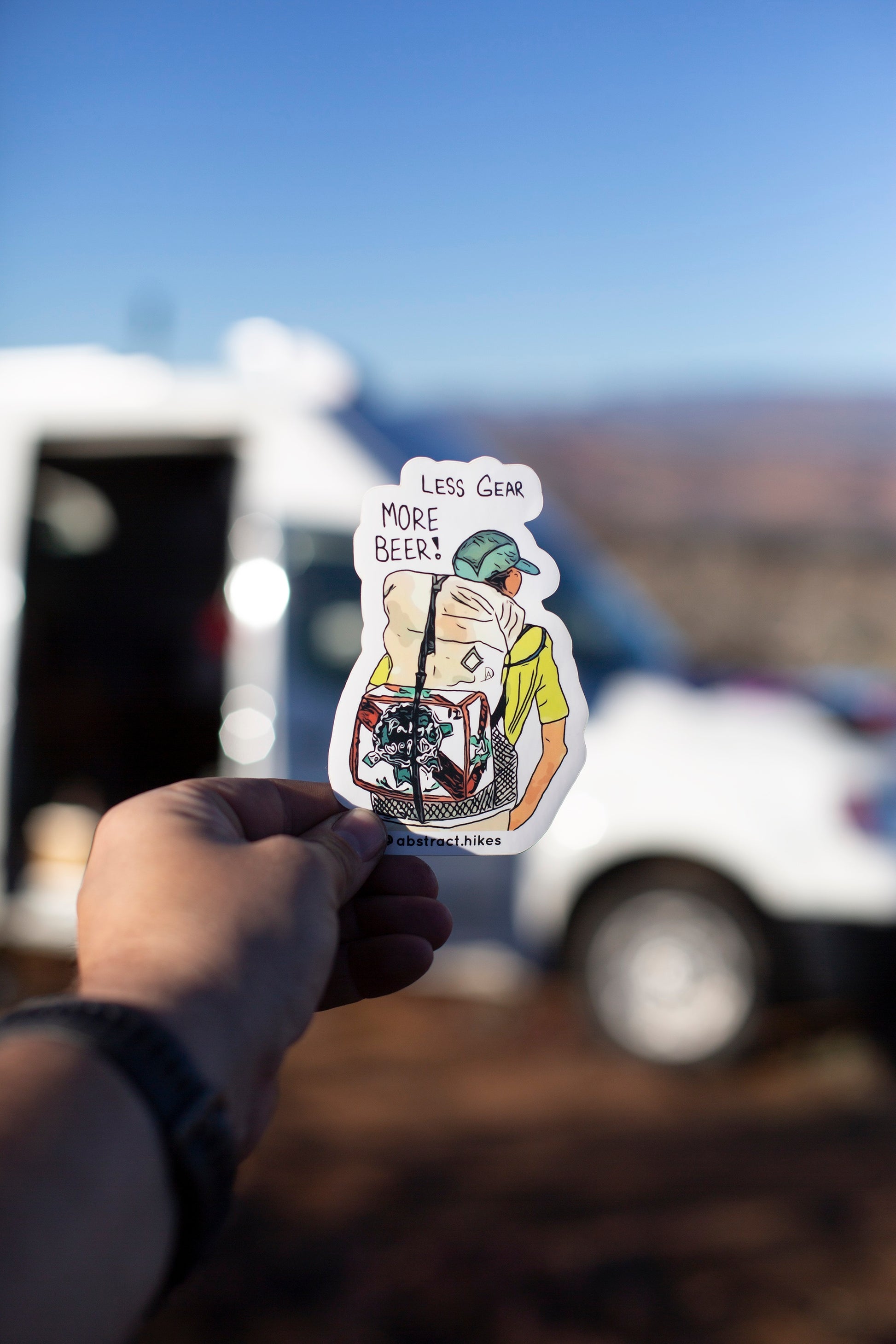 A classic trail idiom: "LESS GEAR MORE BEER!"