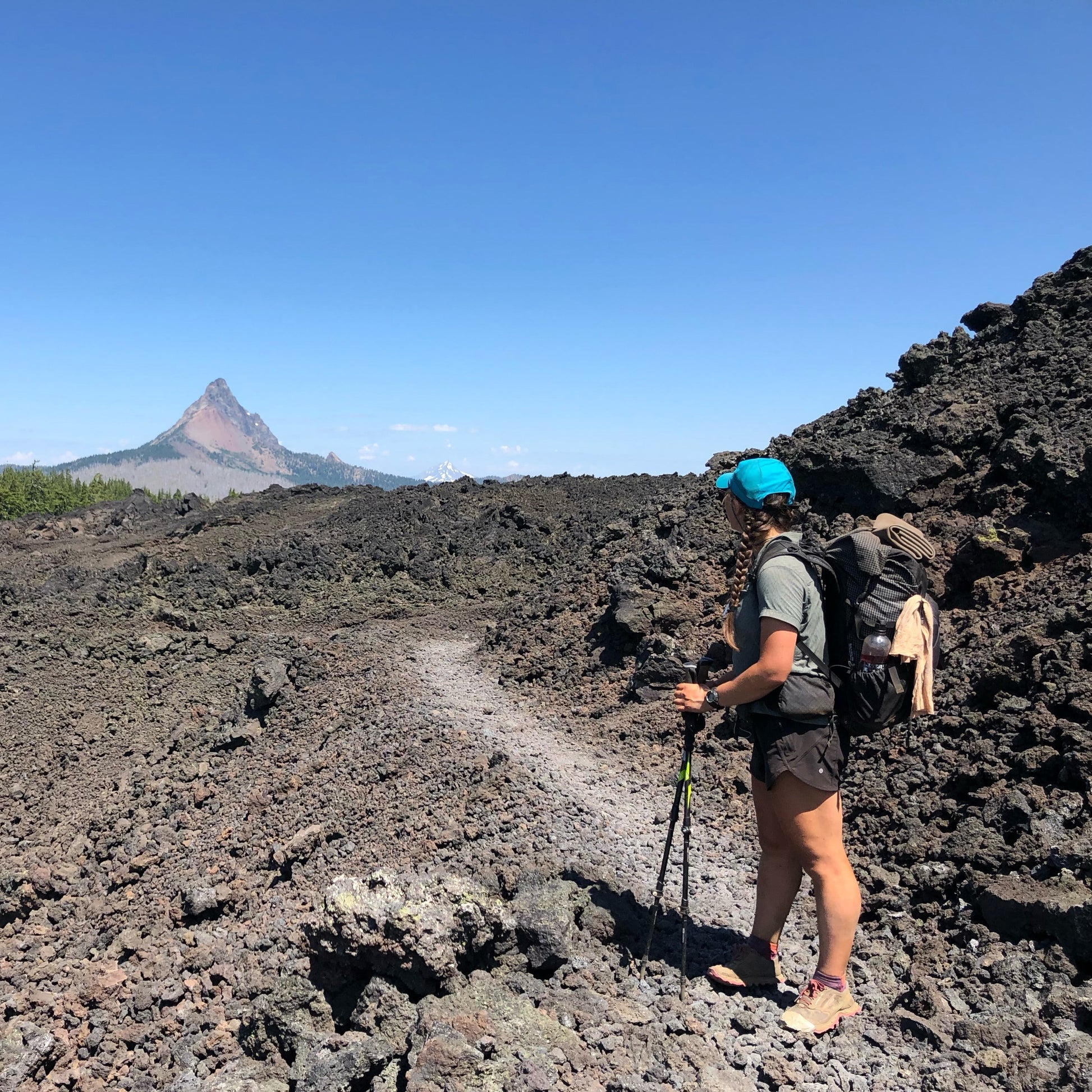 "My younger sister and I hiked the PCT southbound in 2019. We walked together from Canada to Mexico, 2650 miles on the most influential and magical adventure of our lives. We became Junco and Sage, the SoBo Sisters, and that experience means everything to us. Coming off trail we both were hit pretty hard with post trail depression, a common experience for a lot of thru hikers. Returning to the monotony and stress of the "real world", especially one suffering through a global pandemic, was really hard. I commissioned this piece with Alina as a gift to my sister to bring some beauty and happiness into her life. I wanted to remind her that all the experiences and the magic of the trail were not separate from her but a part of her now, and no matter how far from thru hiking life might take her, that would always be true. Every single detail in this piece reflects a meaningful memory from our hike. When I look at it I can feel my sister's beautiful spirit, and am reminded of what makes the PCT so very special." - "Junco"