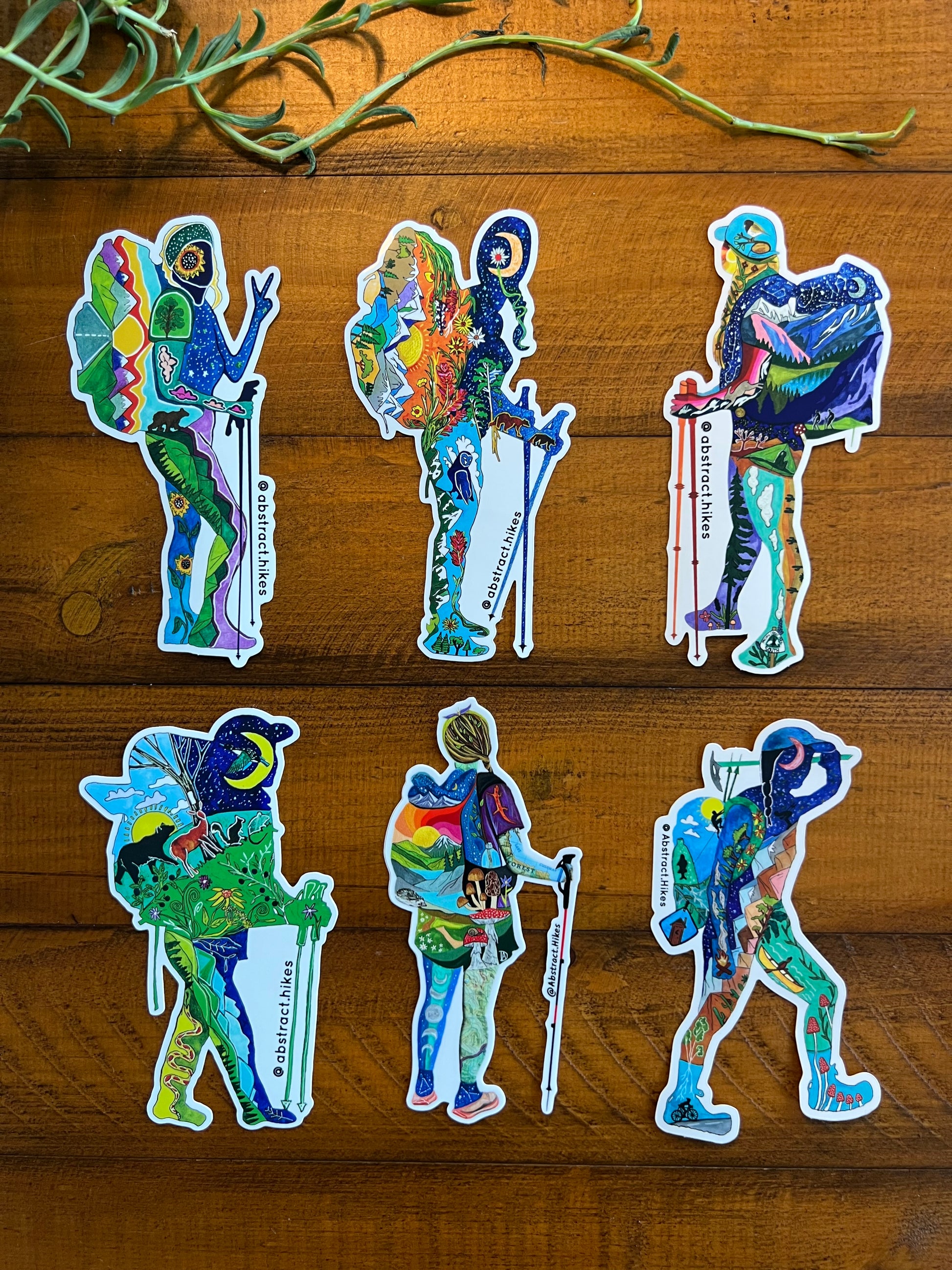 6 intricate stickers of badass ladies adventuring on the Pacific Crest Trail, Appalachian Trail and beyond!