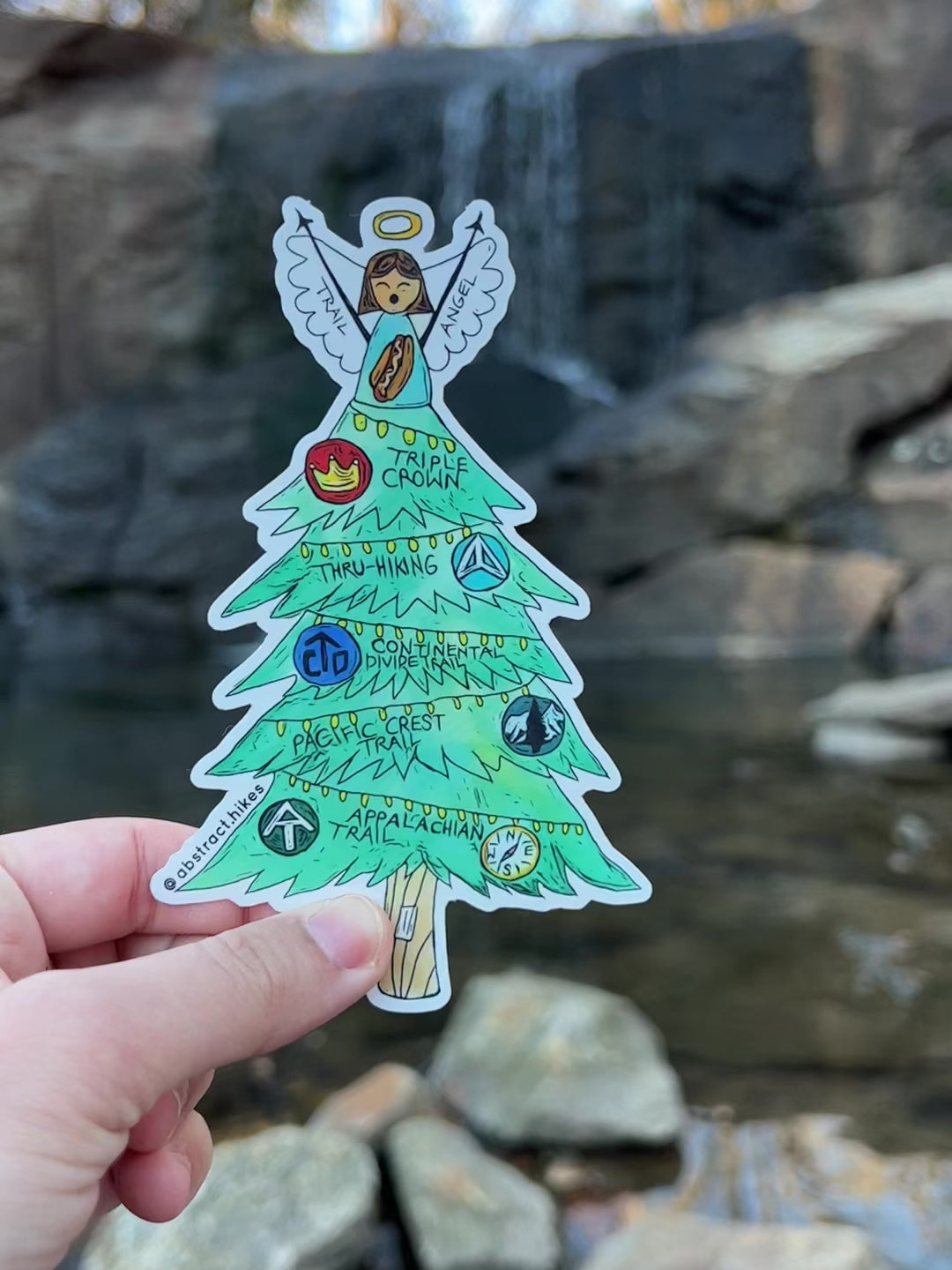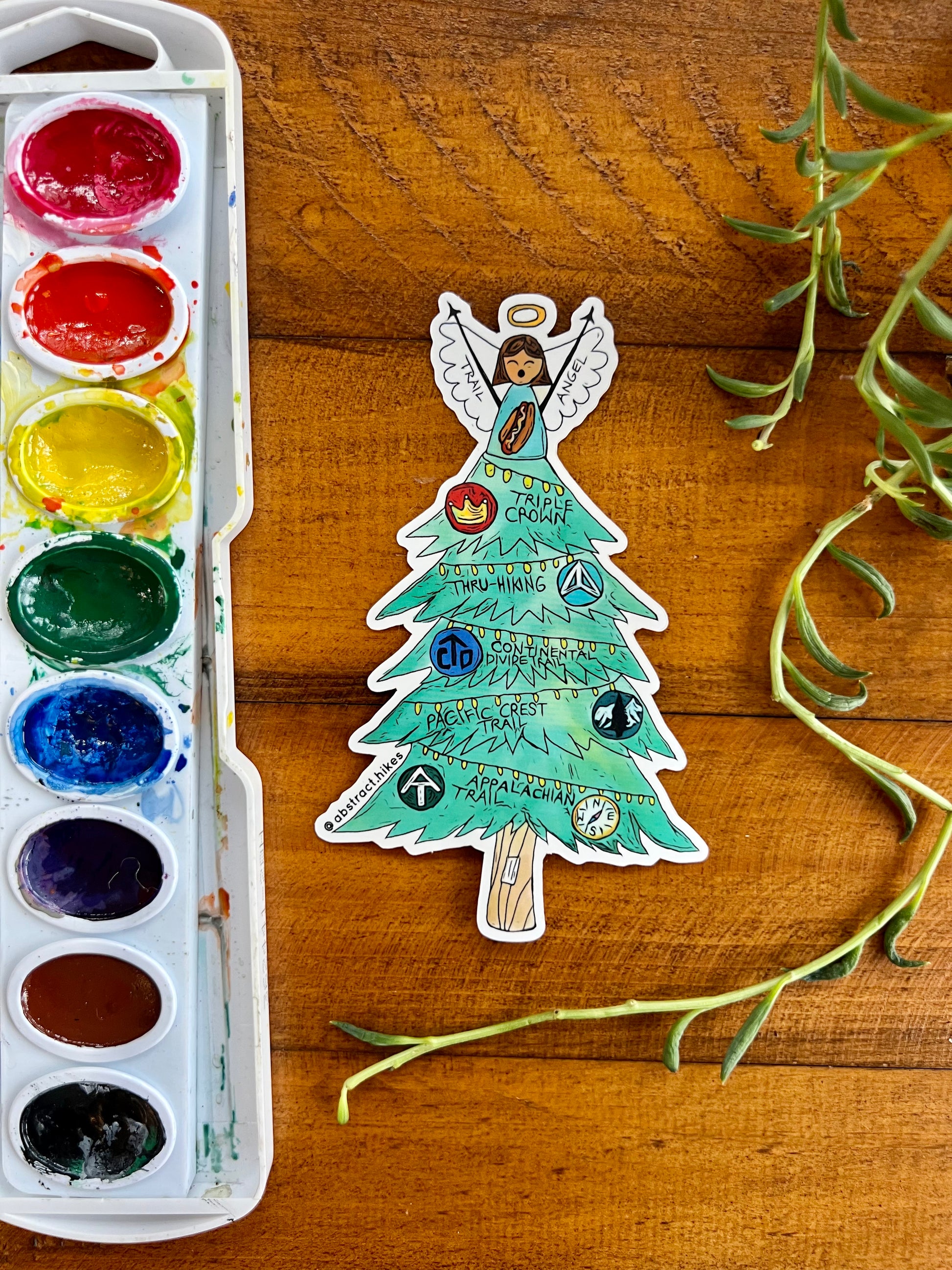 Of course the Triple Crown Thru-Hiker Christmas tree has a trail angel on top with trekking pole arms and a hot dog in her stomach! This is the perfect gift for the thru-hiker or trail angels in your life.