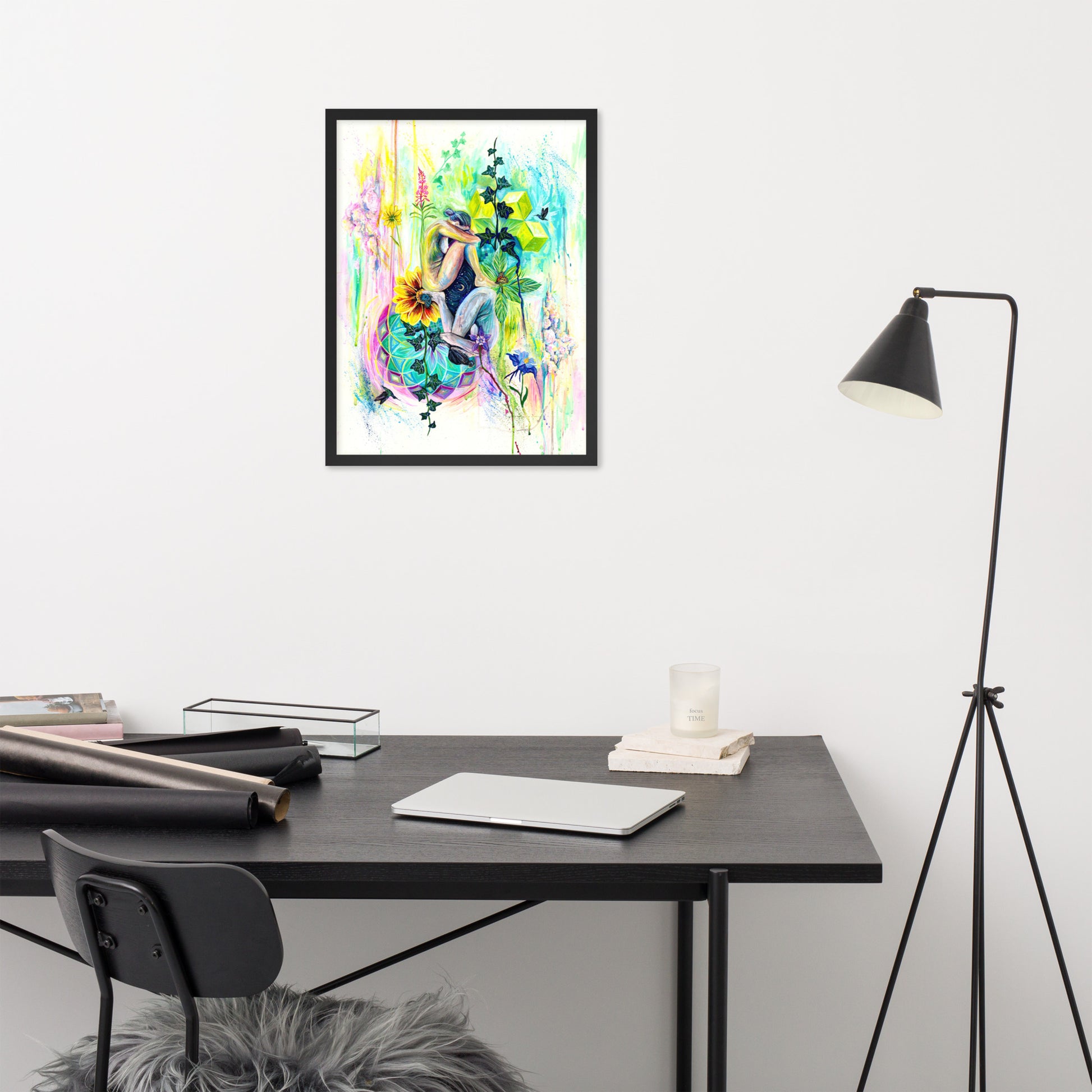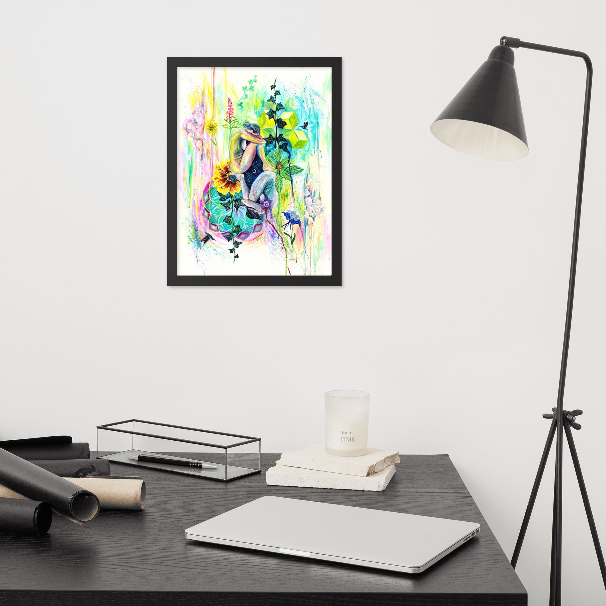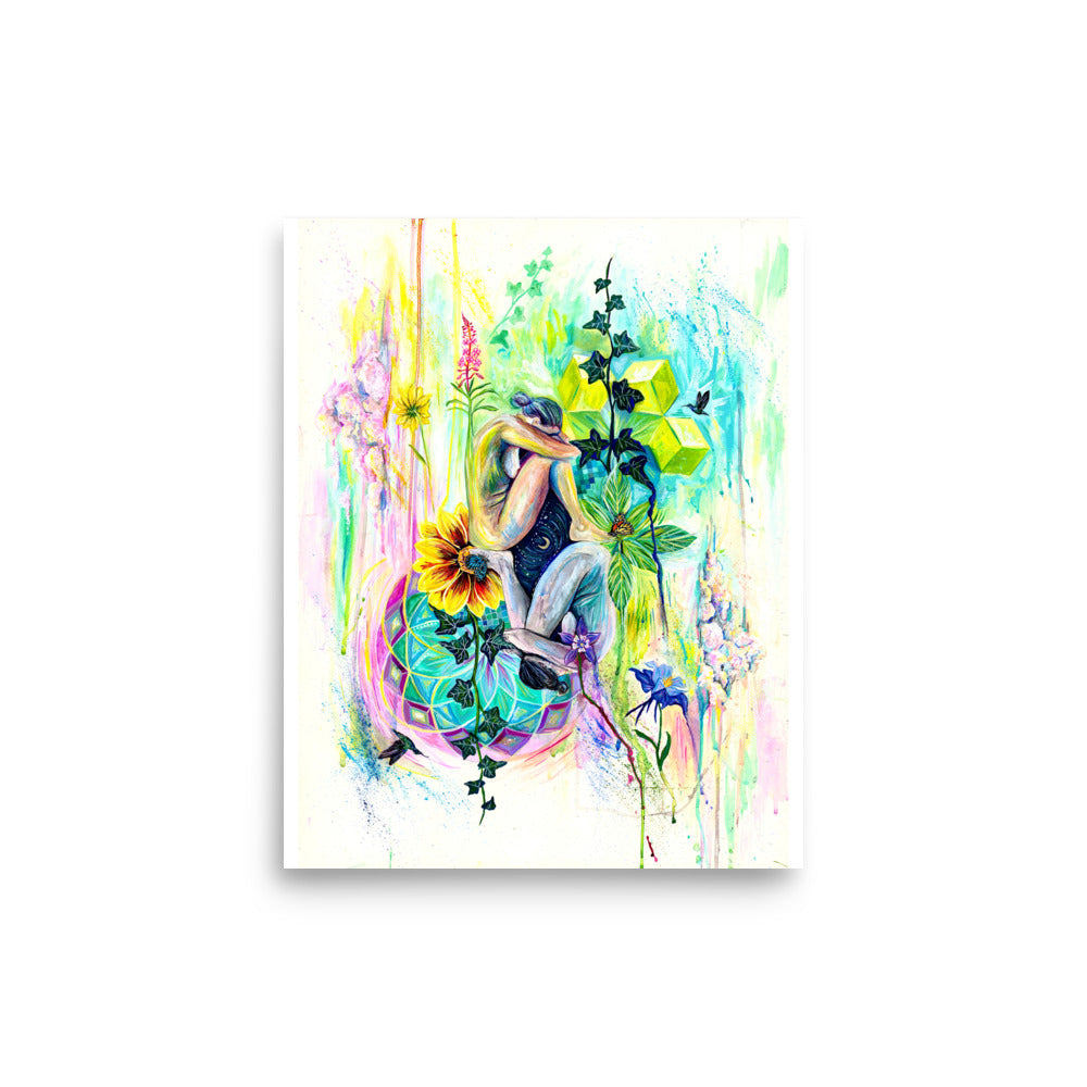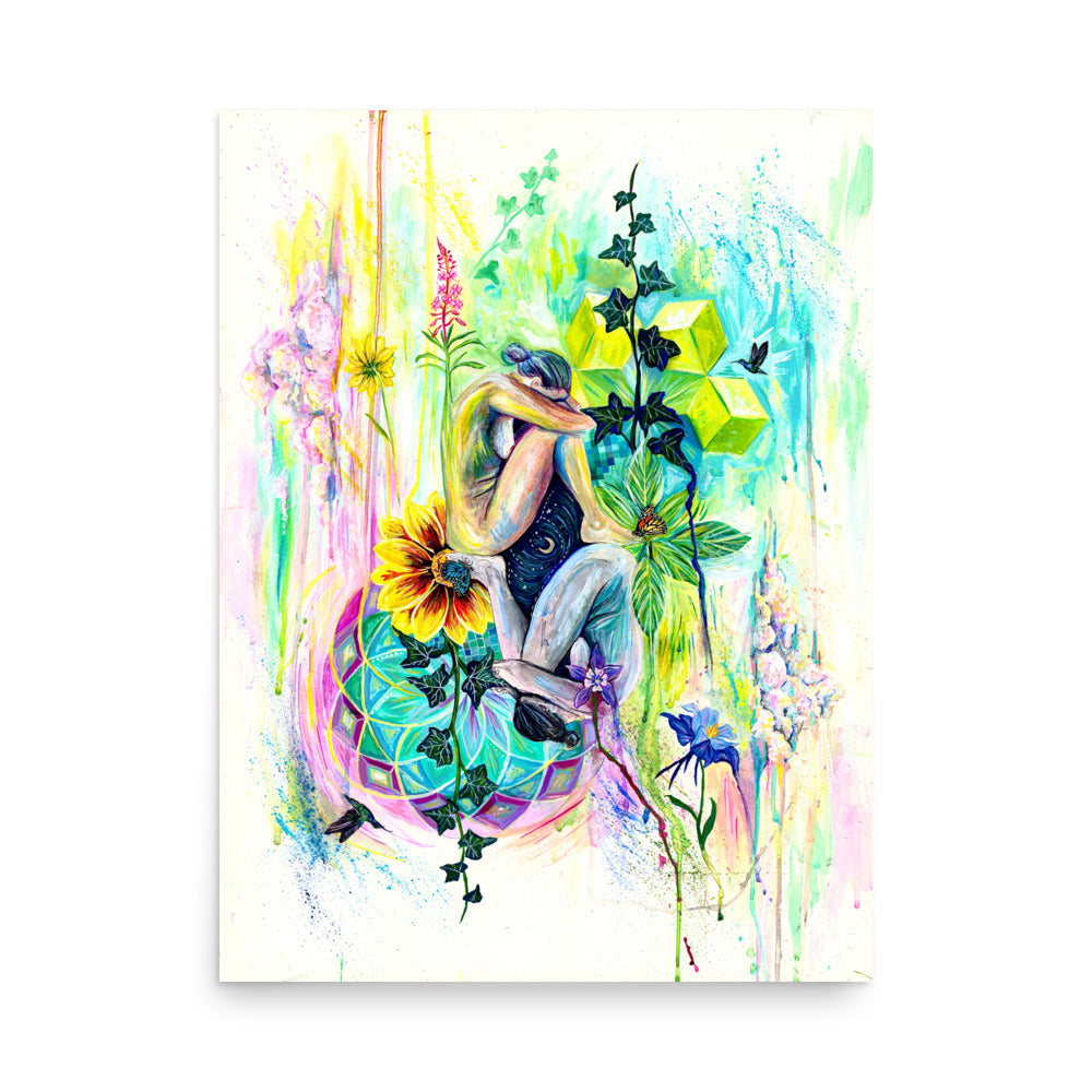 This is the first painting in my new series of abstract female forms, sacred geometry, and nature scenes that I will be releasing over the next year!