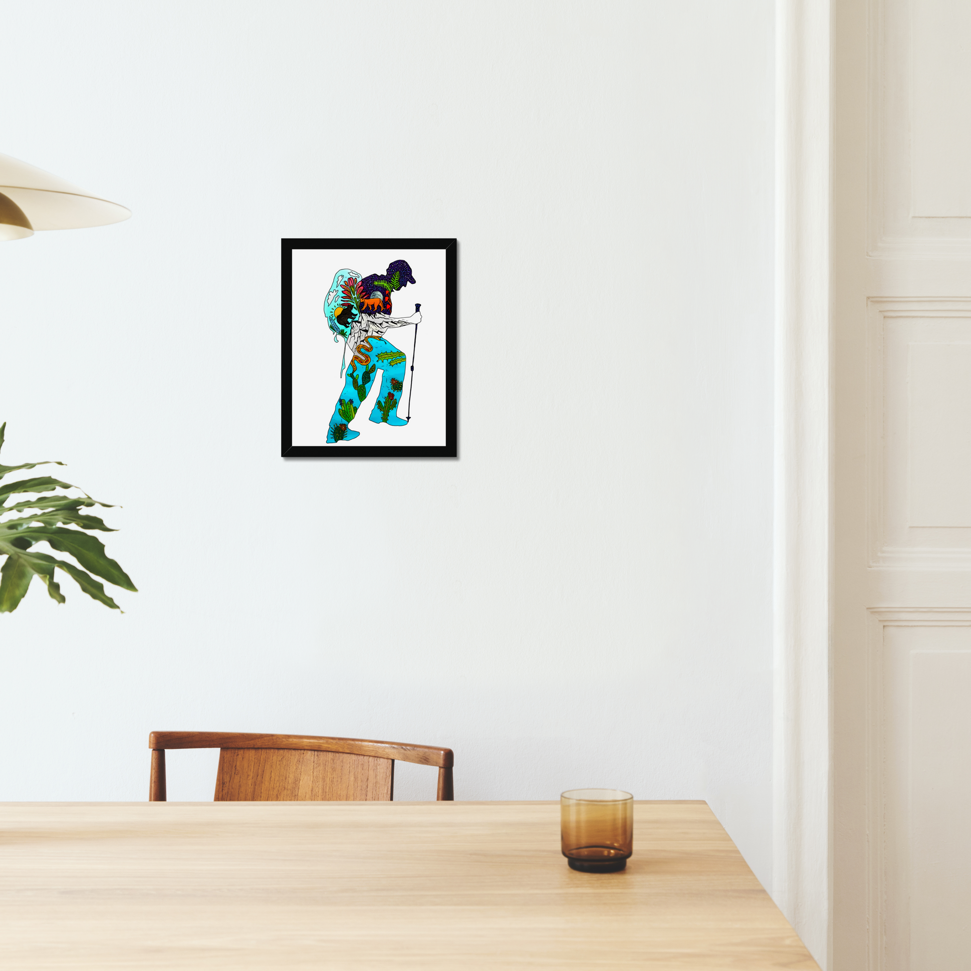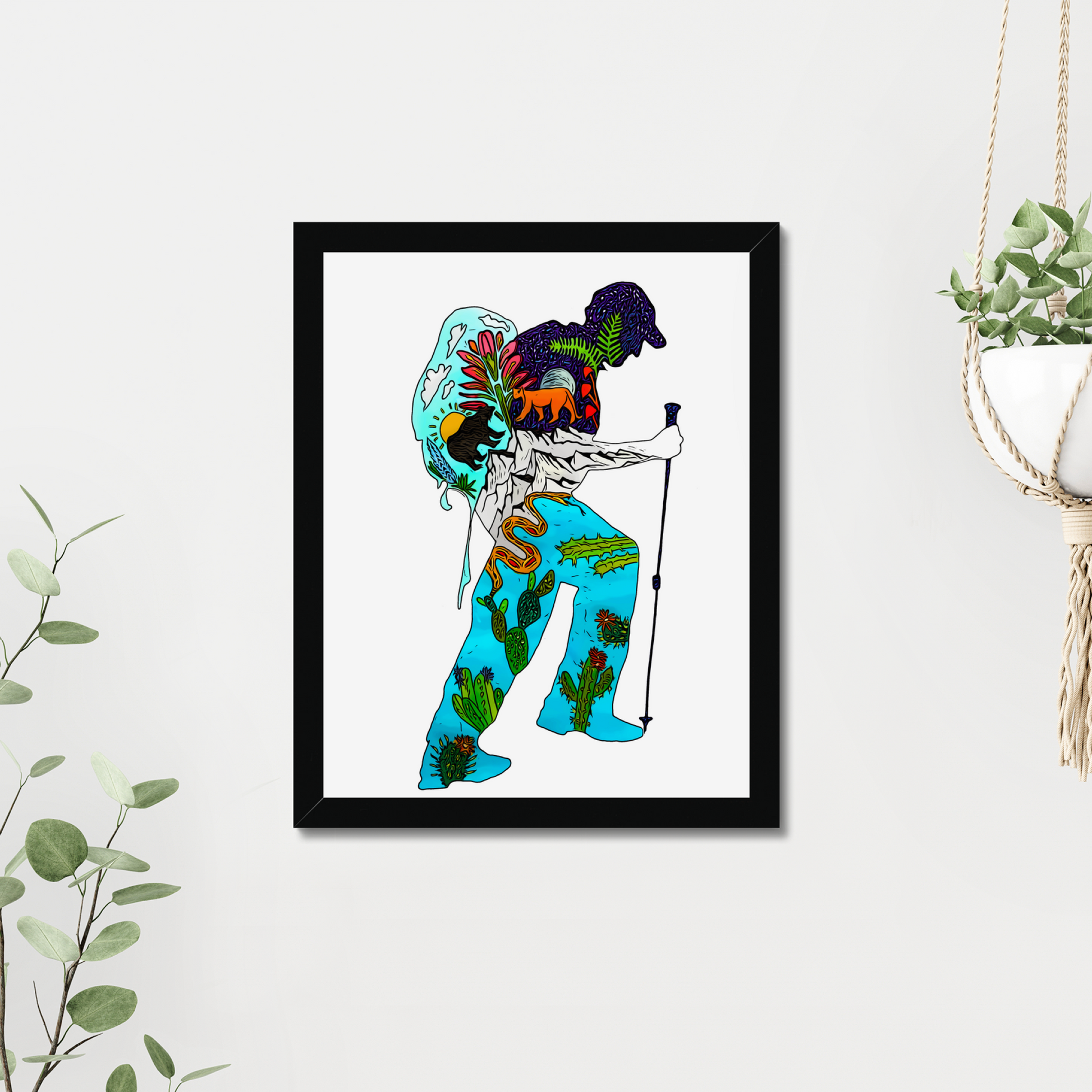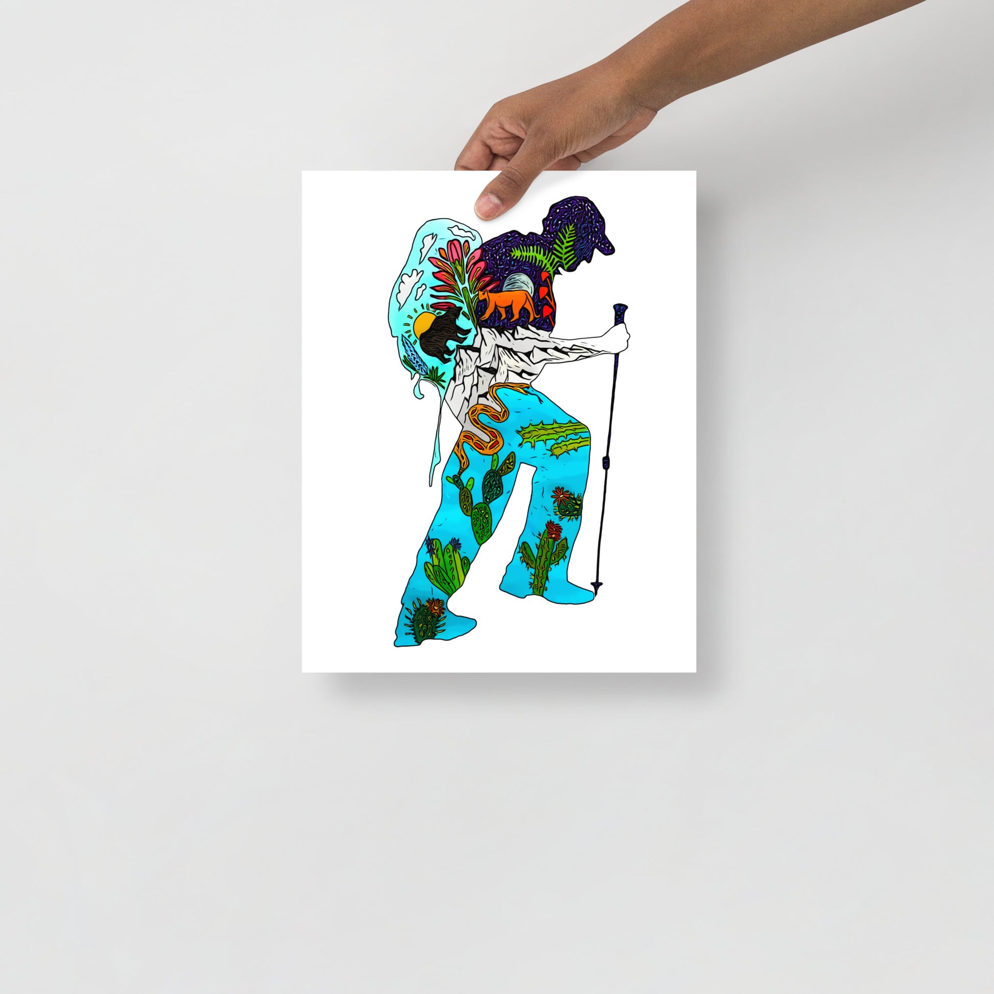 This particular design “PCT Hiker” is inspired by my 1,800 mile hike on the Pacific Crest Trail in 2019. I am so in awe of the juxtaposition of all the varied ecosystems you traverse on this beautiful trail, from the Mojave desert to the verdant jungle of the Pacific Northwest!