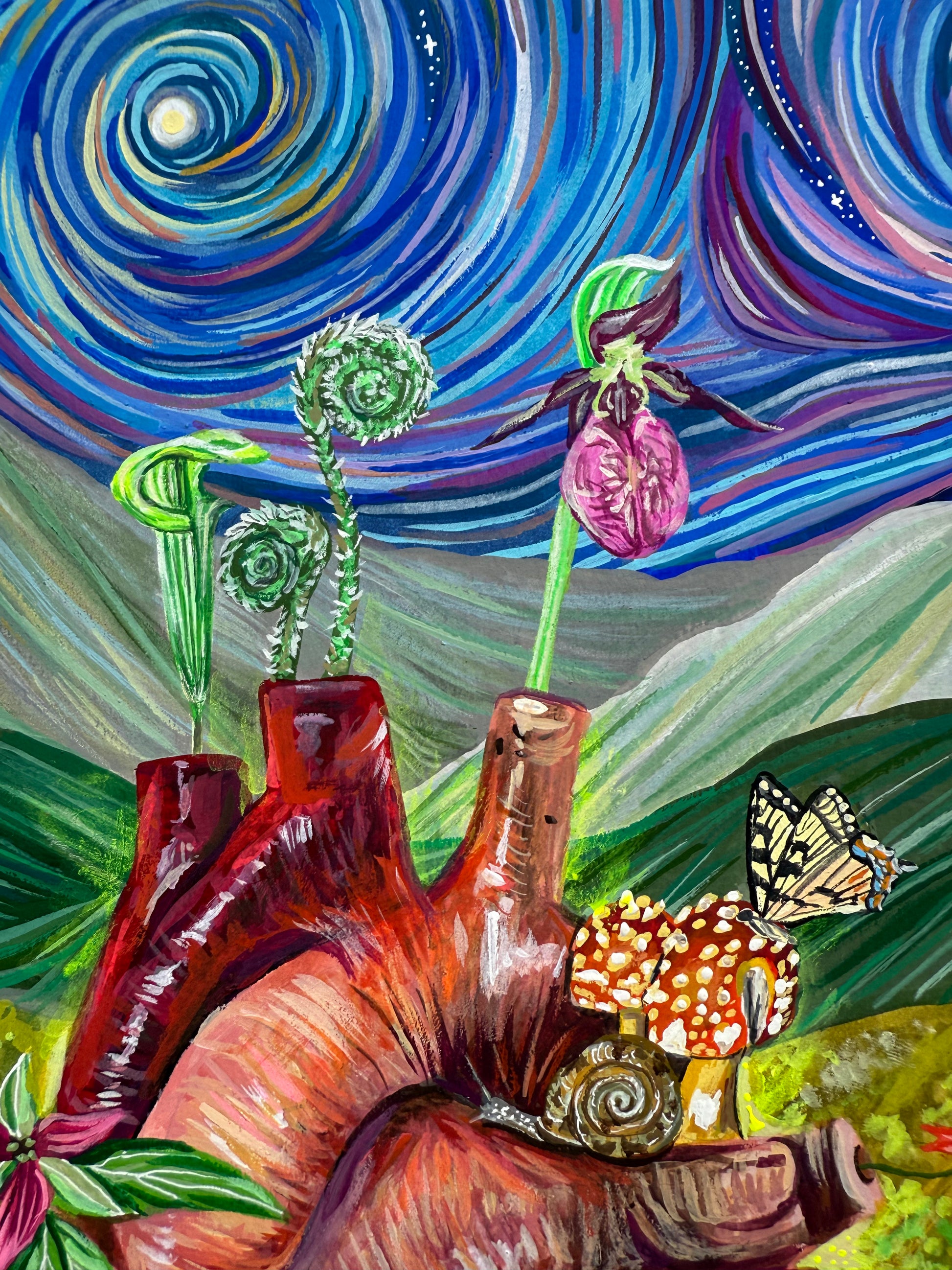 Museum-quality posters made on thick matte paper. This anatomical heart print is filled with flora & fauna of the Appalachian Trail! From trillium, to rhododendron to the eastern newt, this design is packed with the magic of the Appalachian mountains!