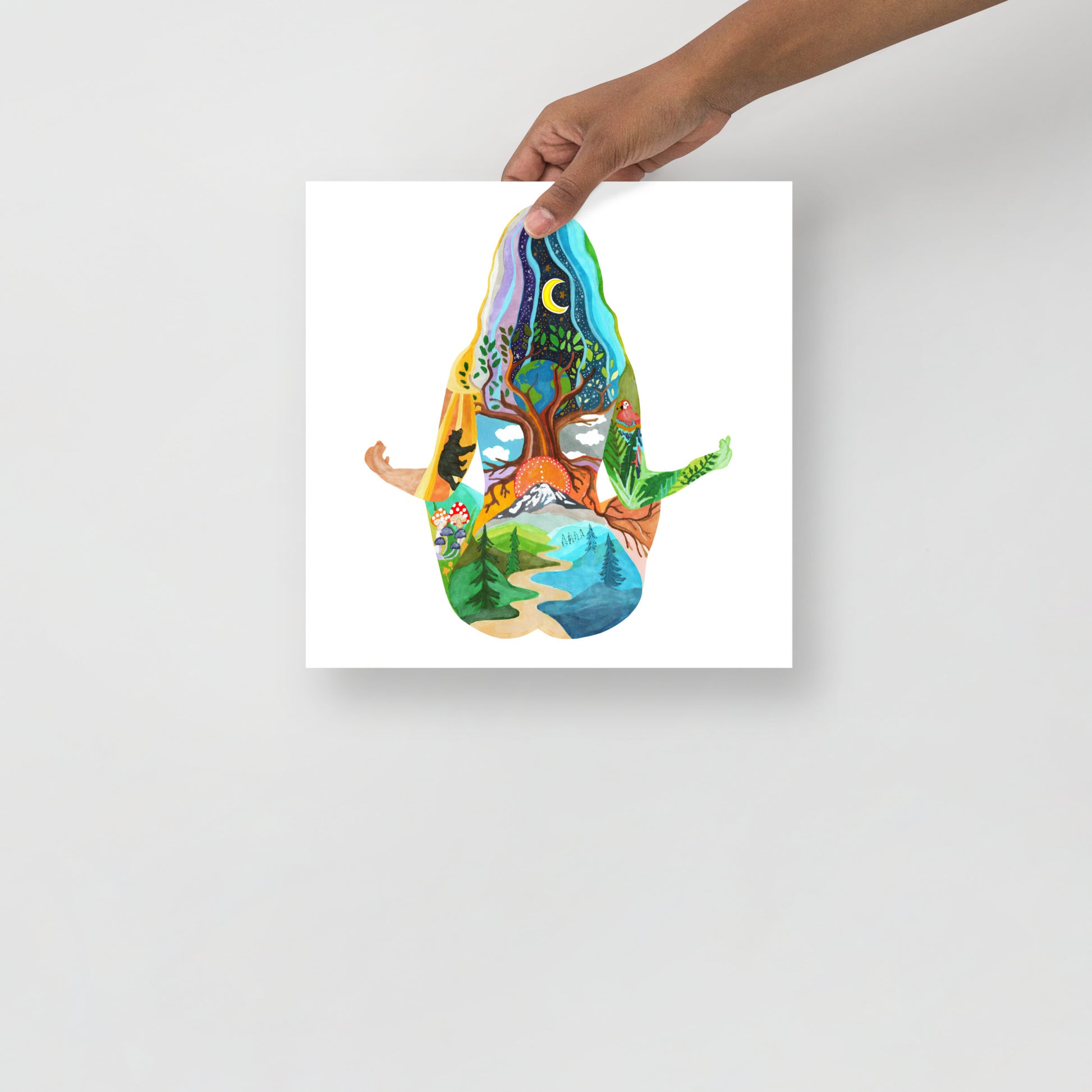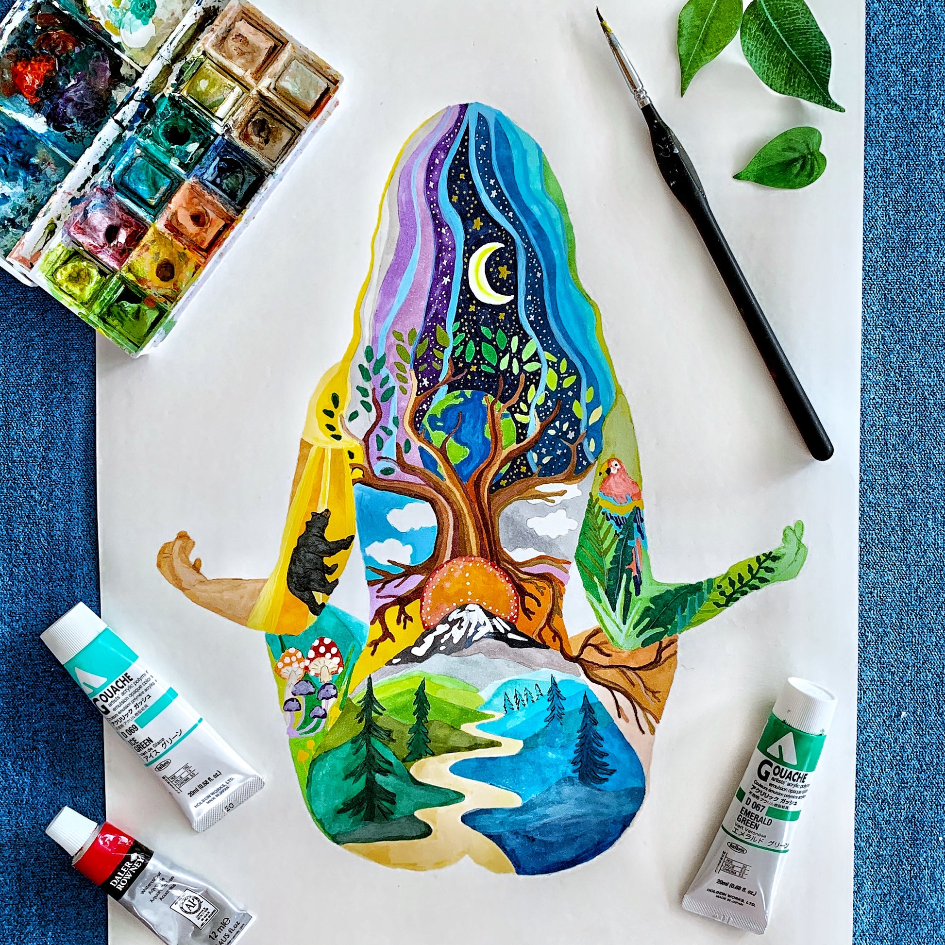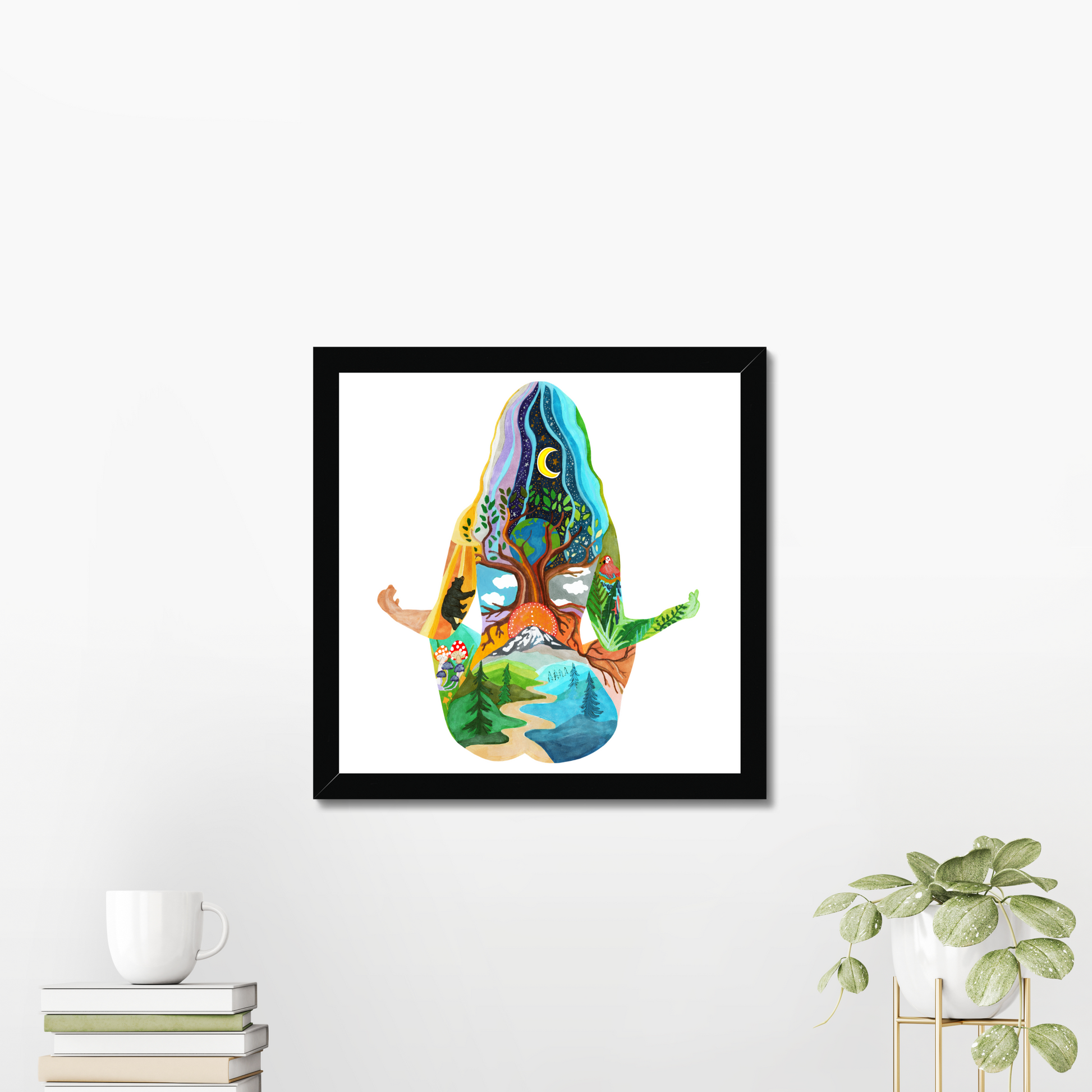 This particular painting “Yoga Gal” is a self-portrait that encapsulates the beautiful internal world I tap into through meditation and yoga.