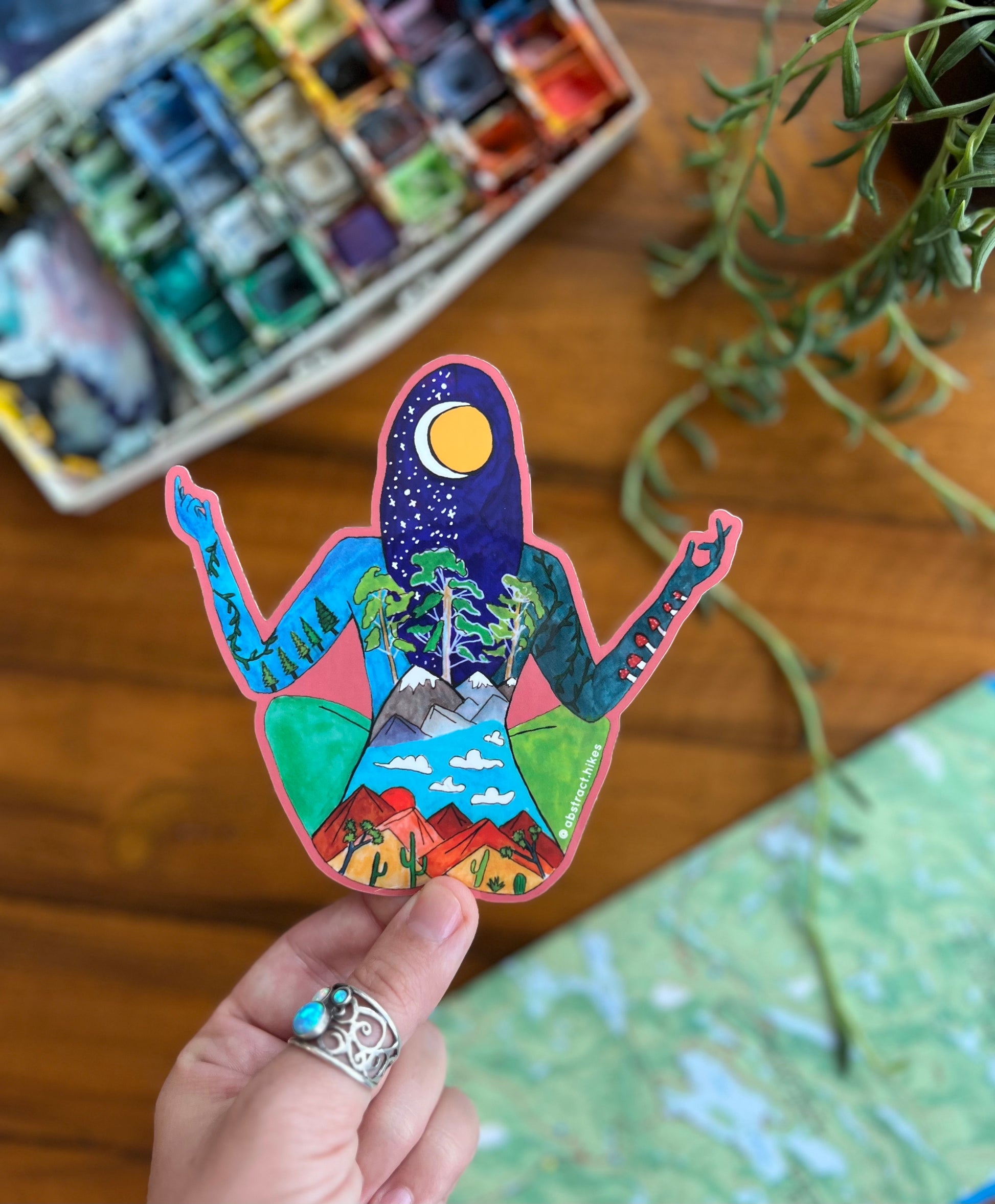 This glossy sticker perfectly encapsulates the divine feminine as well as the power of meditation. Whether you are a yogi, meditator, or outdoor explorer- this design is for YOU. A perfect reminder that you are part of mother nature and all her wonder!